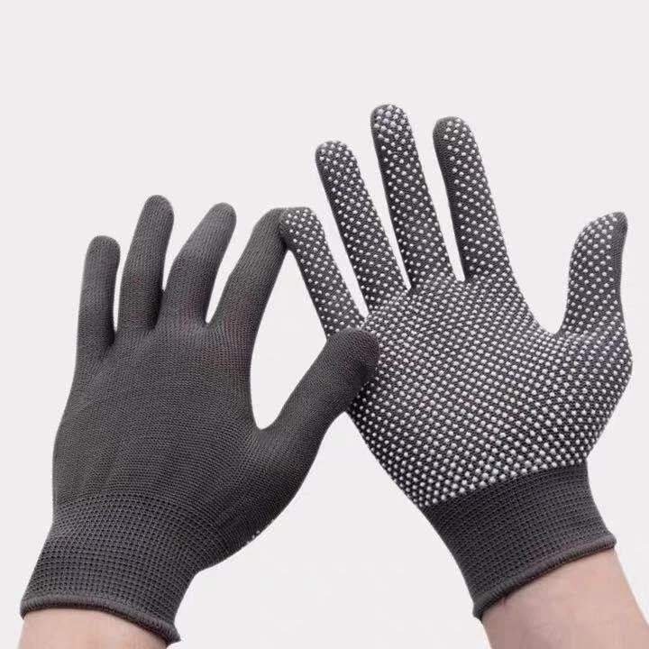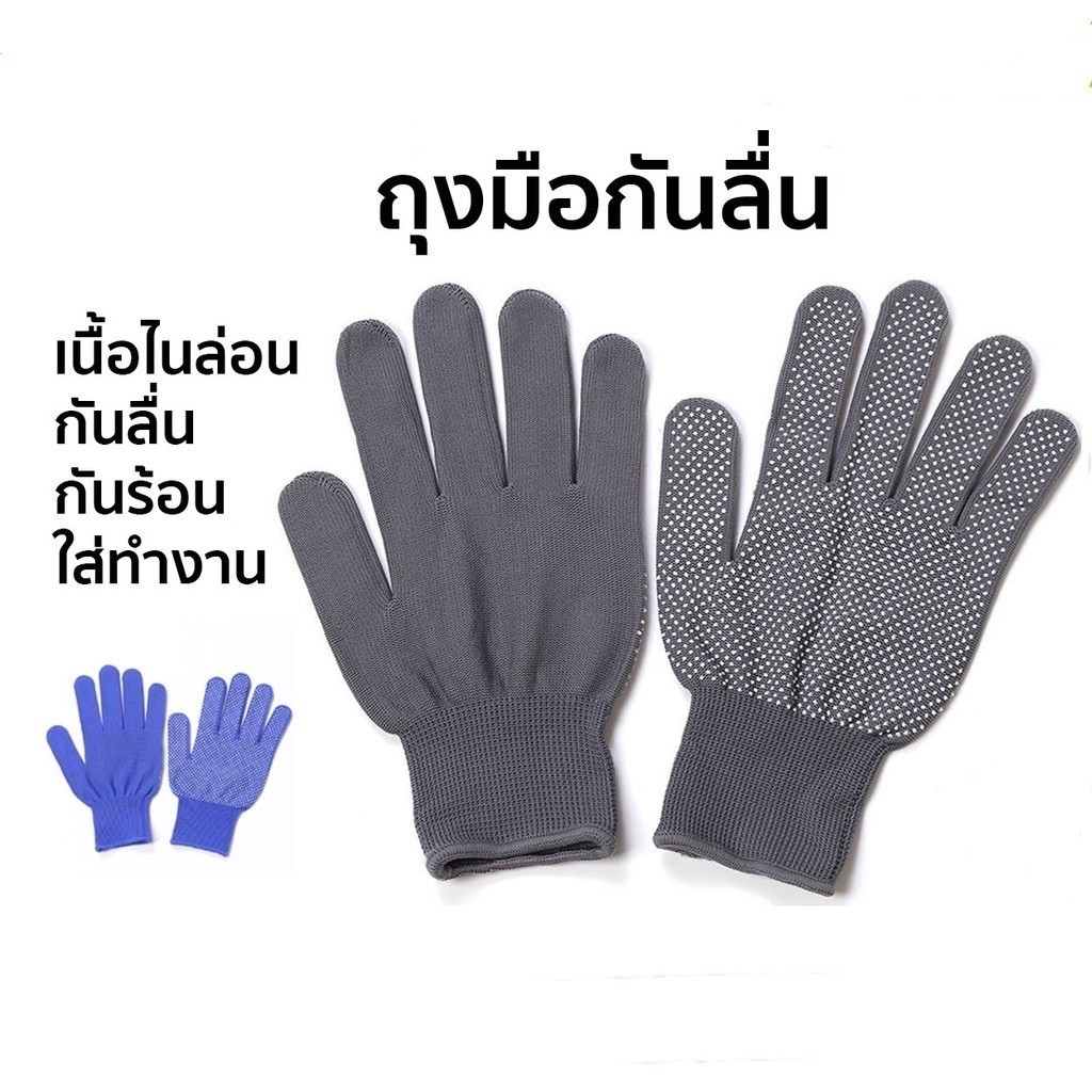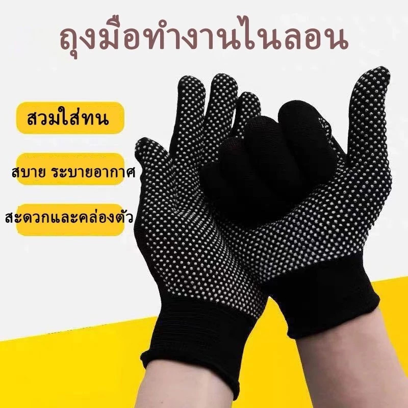ถุงมือกันลื่นแบบตุ๊กแก (ยกโหล 12 คู่ คละสี) ถุงมือทำงานพร้อมปุ่มกันลื่น ผลิตจากไนลอนคุณภาพดี ทนทาน ราคาประหยัด