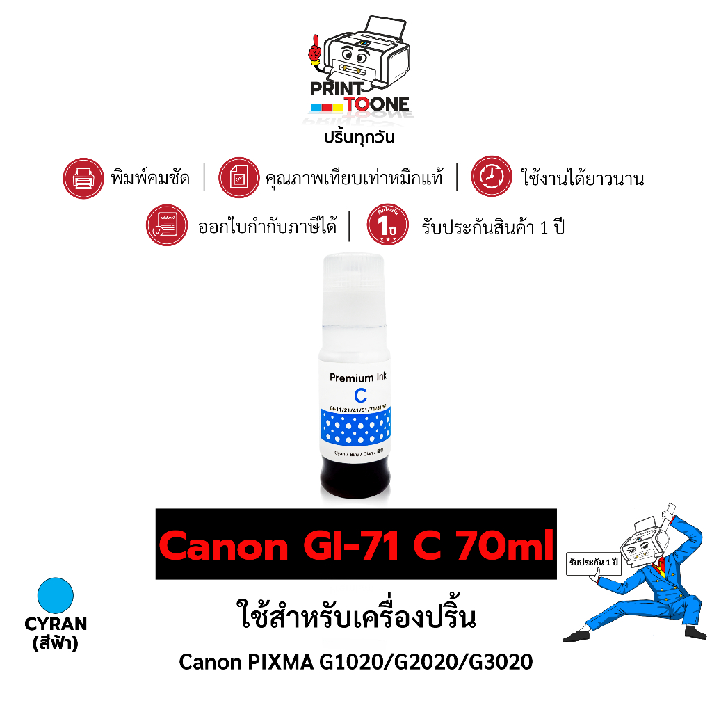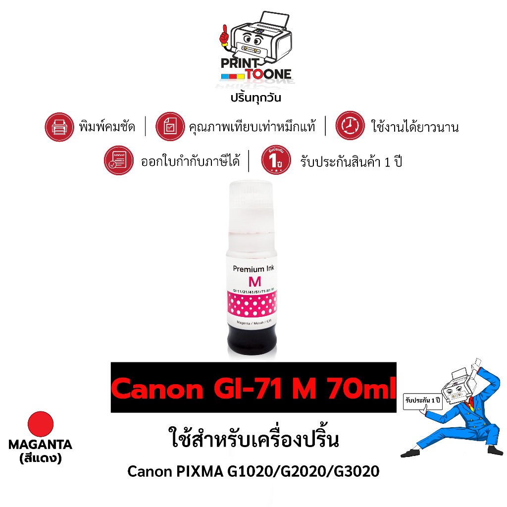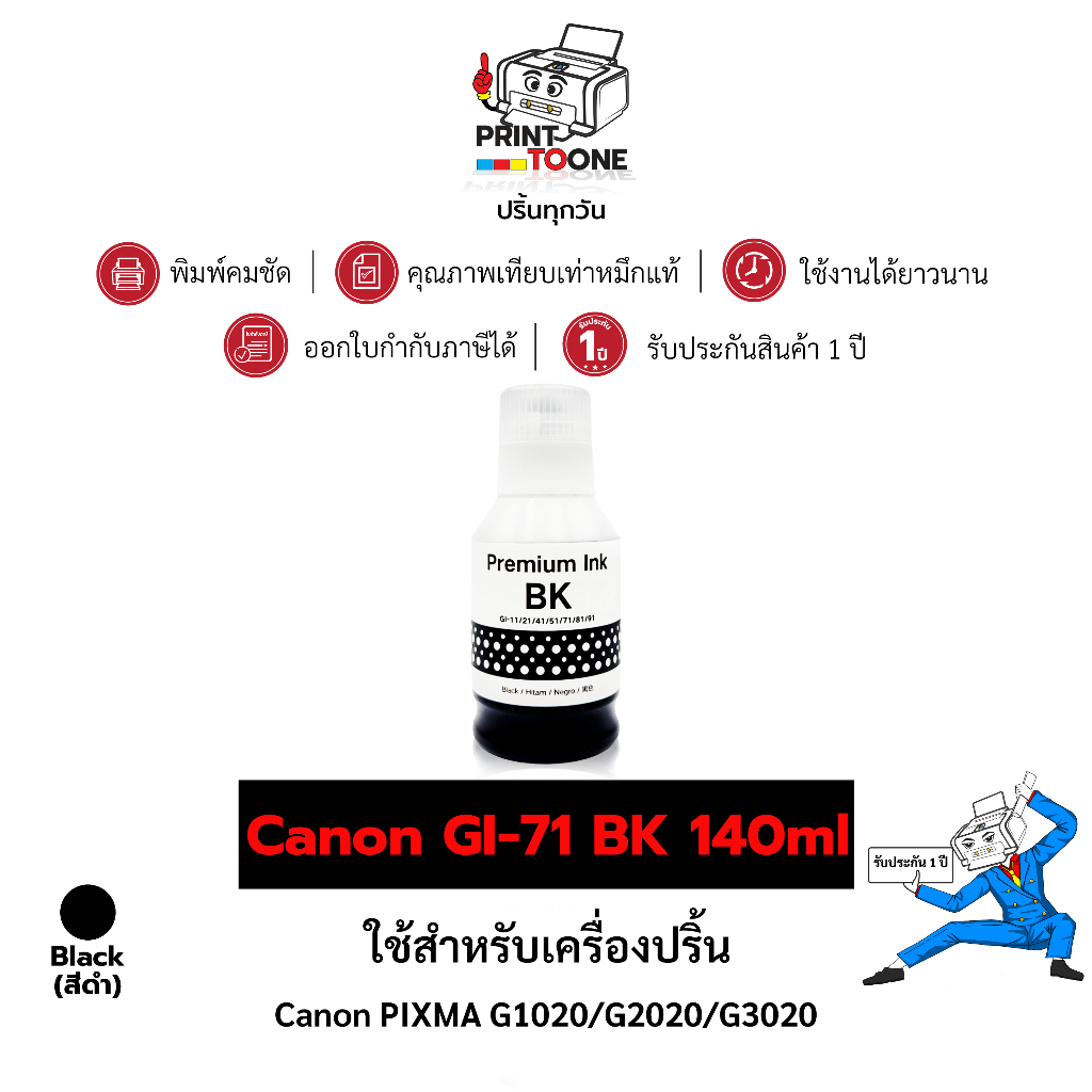 น้ำหมึกเติม Refill ink GI-71 ตลับหมึก น้ำหมึก ชุดสี เทียบเท่าคุณภาพสูง ใช้กับเครื่อง Canon PIXMA G1020 Canon PIXMA G3060