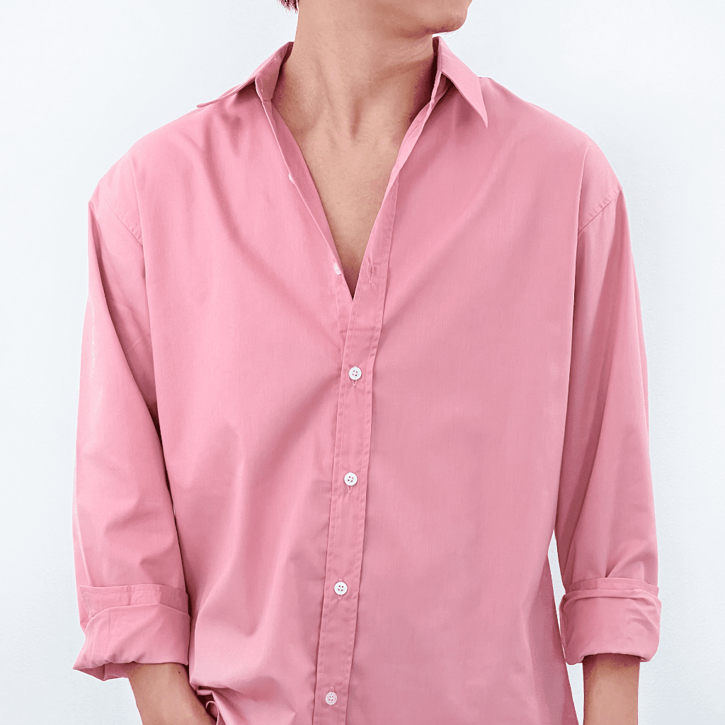 Fomo-เชิ้ตแขนยาว สีชมพูเบลเลต เสื้อเชิ้ตวาเลนไทน์ เสื้อเชิ้ตสีชมพูพาสเทล เสื้อเชิ้ตสีพาสเทล