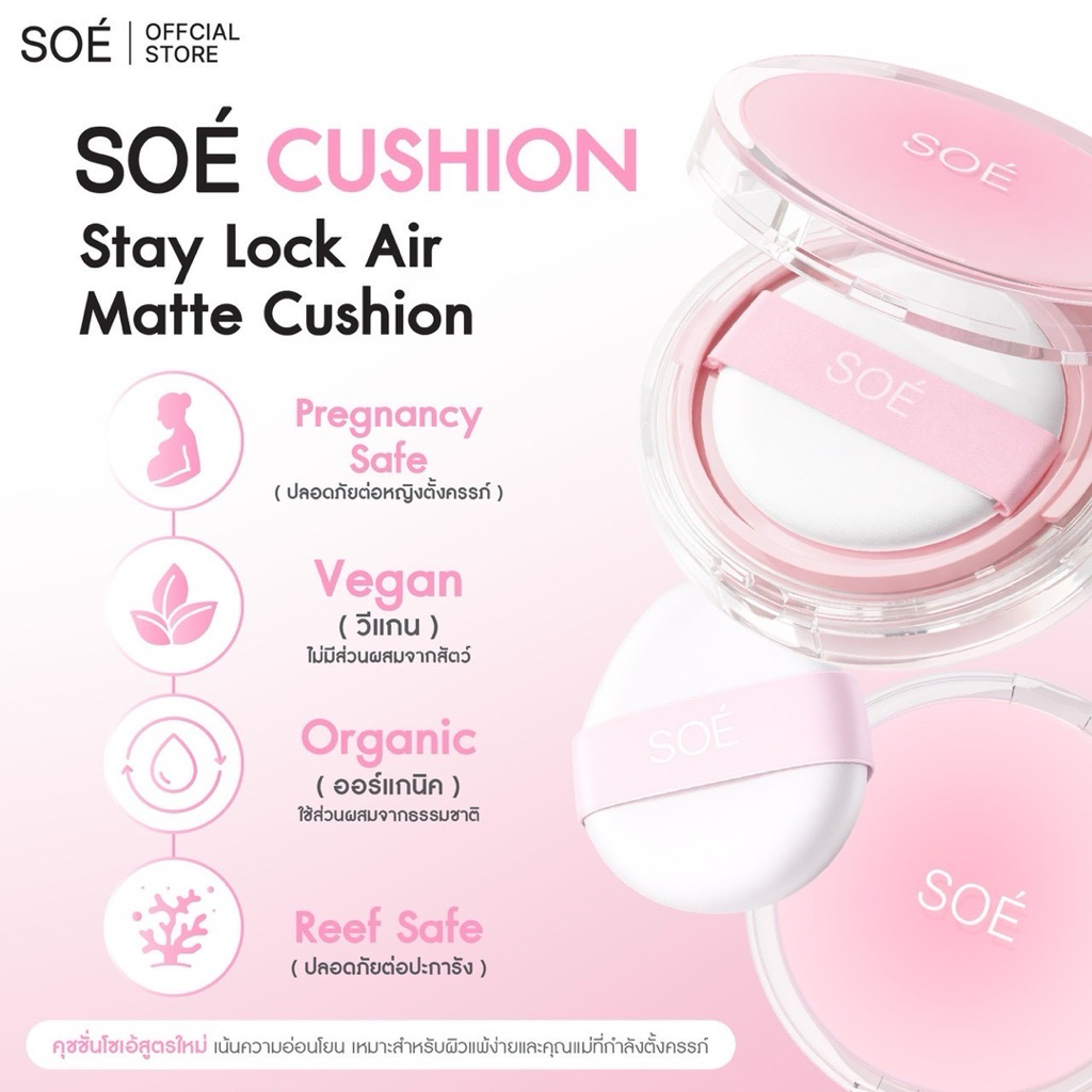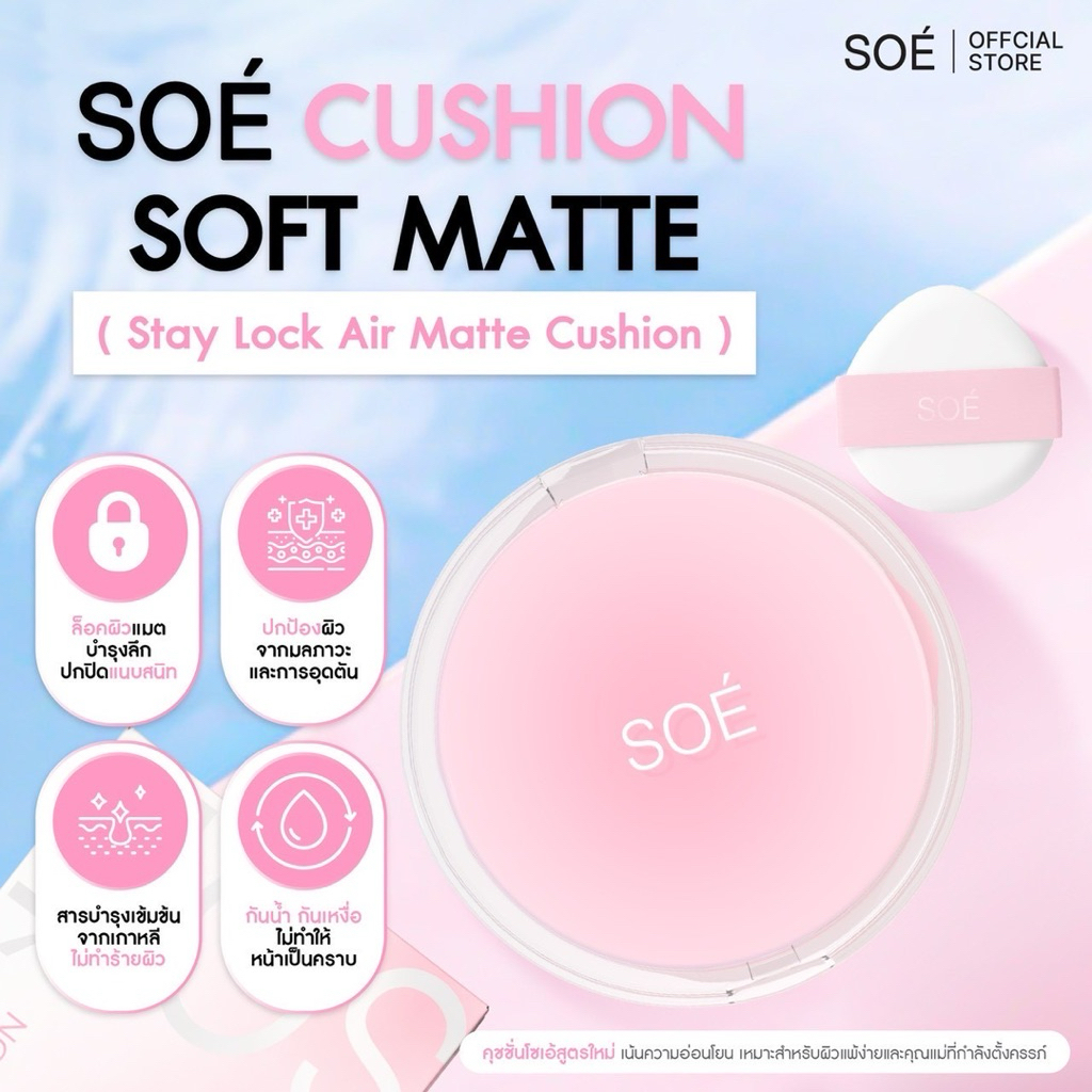 SOE 5 เฉดสีใหม่🩵🩷[2รุ่น ของแท้‼️]คุชชั่นโซเอ้ Cushion Soe คุชชั่น โซเอ้สีชมพู โซเอ้ตลับชมพู คุชชั่นsoe กันแดด spf50pa+++