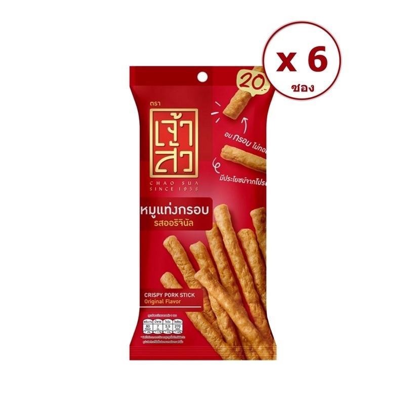 [ยกแพค 6 ซอง ] Chao Sua เจ้าสัว หมูแท่งอบกรอบ 18 กรัม