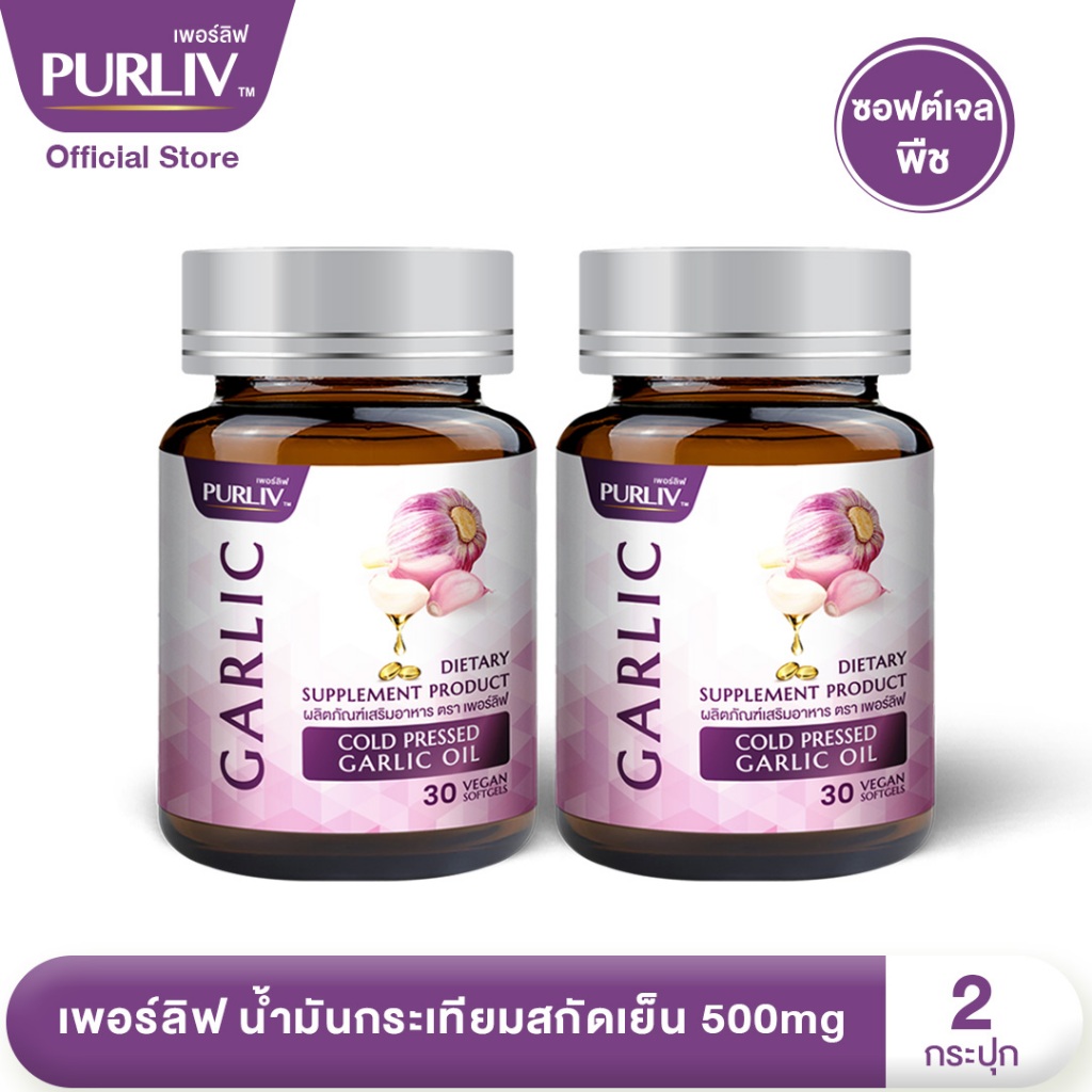 PURLIV Garlic เพอร์ลิฟ น้ำมันกระเทียมสกัดเย็น 2 กระปุก ลดคอเลสเตอรอล ลดความดัน เพิ่มไขมันดี (กระปุกละ 30 แคปซูล)