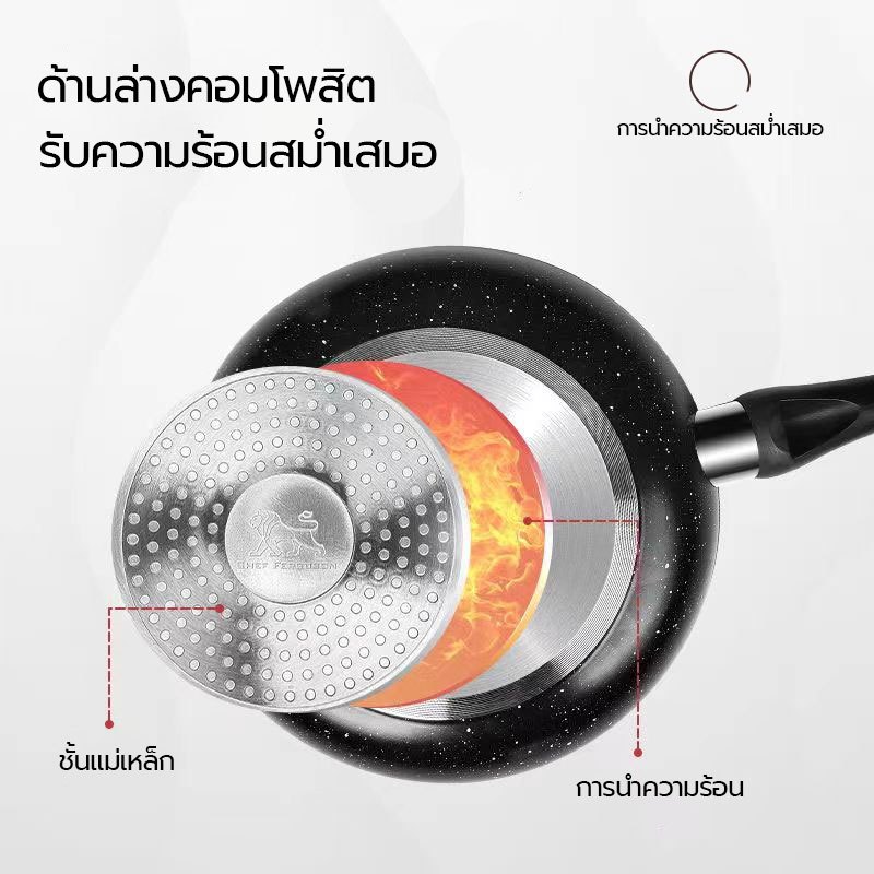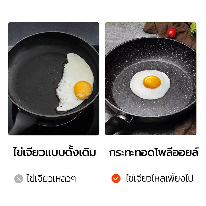 กระทะเคลือบหินอ่อน ไม่ติดกระทะ กระทะอเนกประสงค์ ใช้กับเตาแม่เหล็กไฟฟ้าเตาแก๊สได้ ล้างง่าย