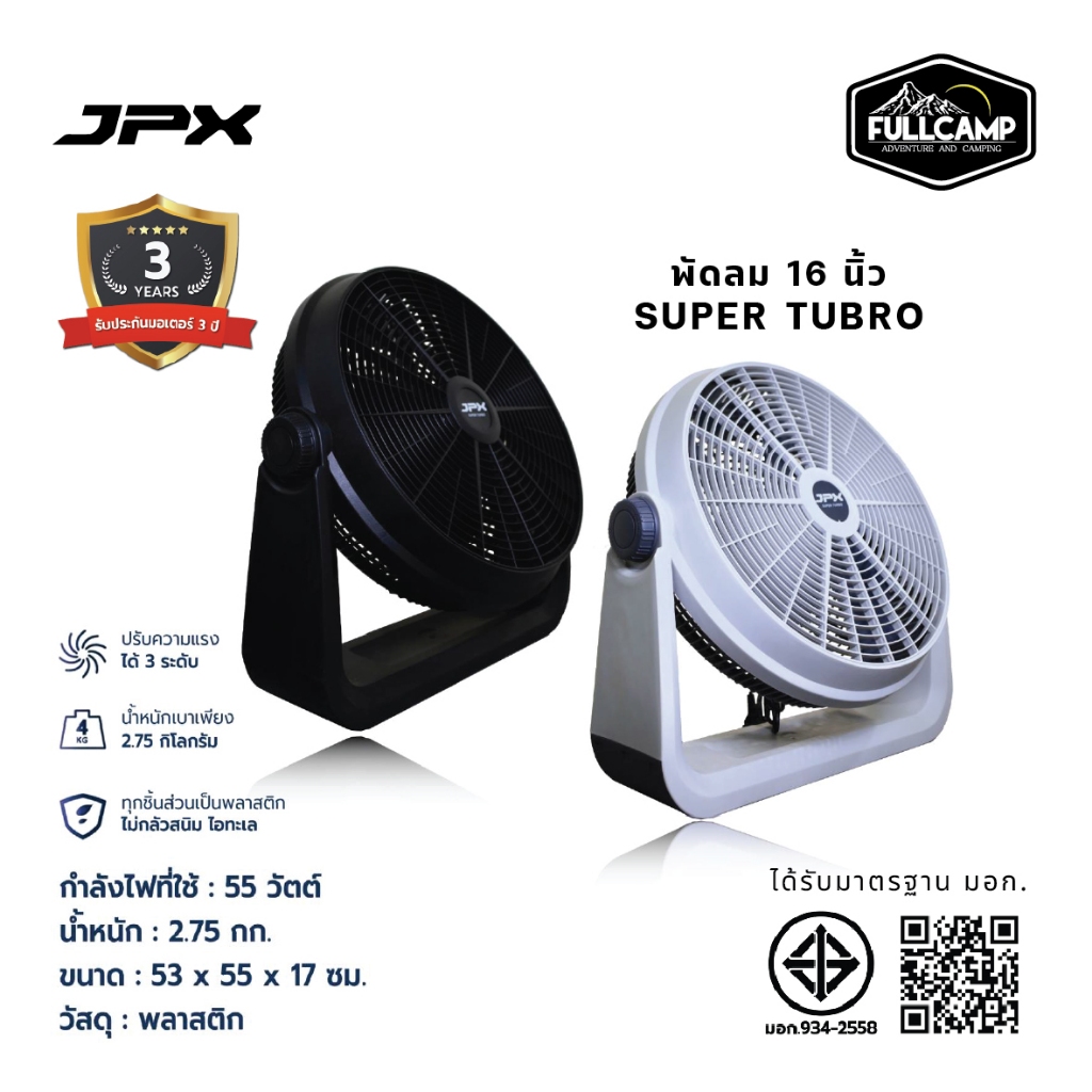 JPX พัดลม SUPER TURBO 12นิ้ว 16 นิ้ว และ 20 นิ้ว รุ่นใหม่ พัดลมตั้งเเคมป์ พัดลมแคมป์ปิ้ง พัดลมพกพา