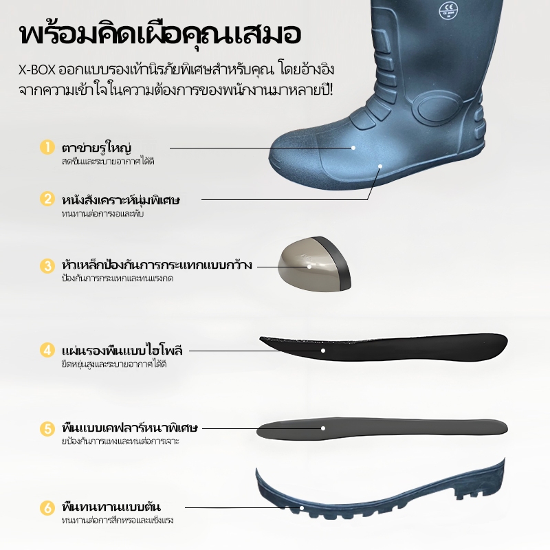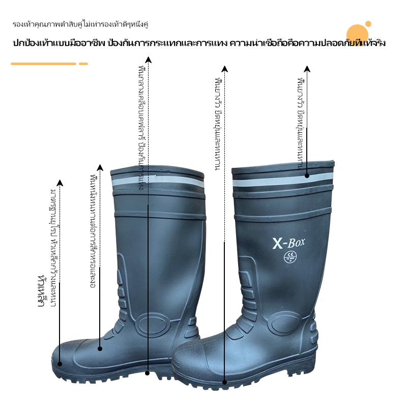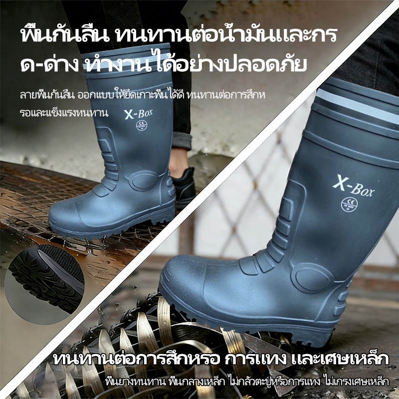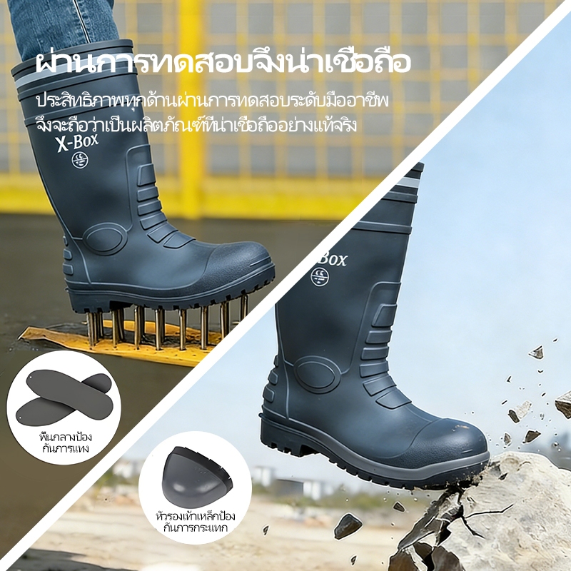 YX01 รองเท้าบูท งานก่อสร้าง หัวเหล็ก พื้นเหล็ก มีผ้าซับใน บนดำ พื้นดำ พื้นผสมยางไนไตรล์ size 37-47