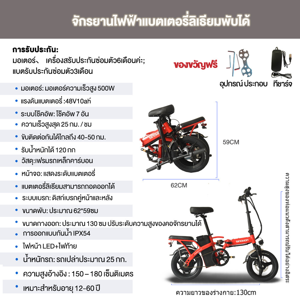Forever จักรยานไฟฟ้าพับได้ รถจักรยานไฟฟ้า จักรยานไฟฟ้าผู้ใหญ่ 500W แบตลิเที่ยม48V ขับได้ไกลถึง40-100km Electric Bike