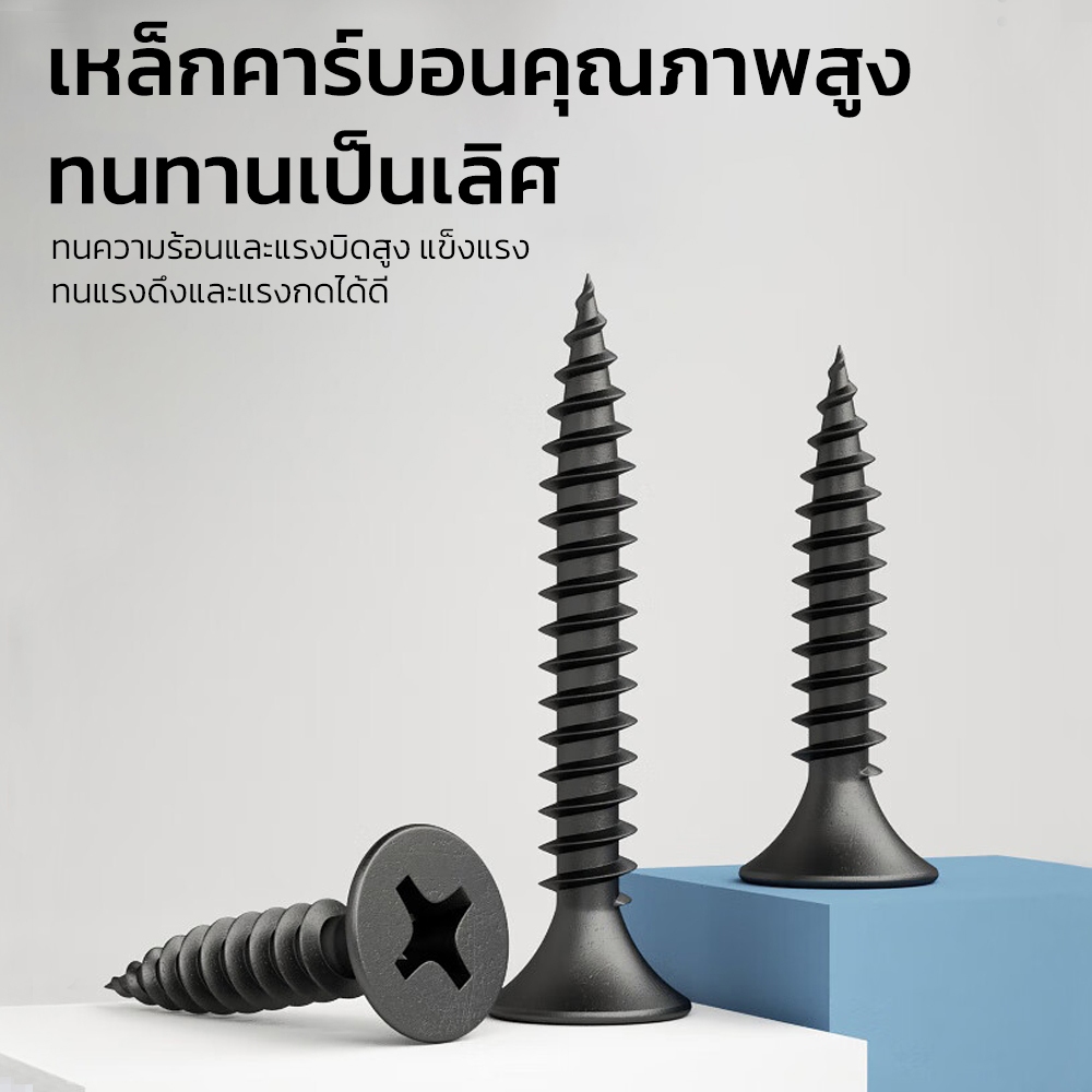 Mitsushi สกรูยึดไม้ฝา สกรูไม้ เกลียวปล่อย สกรูดำ น๊อตดำ น๊อตเกียวปล่อยดำ งานไม้และงาน DIY