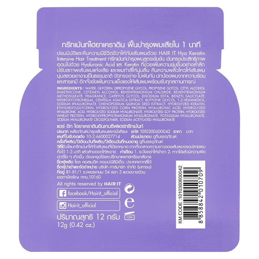 HAIR IT ไฮยาเคราตินอินเทนซีฟแฮร์ทรีทเม้นท์ 12g. แฮร์อิท