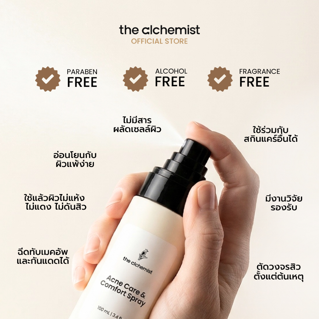 The Alchemist Acne Care & Comfort Spray สเปรย์บำรุงผิวหน้าลดสิวเกิดใหม่ ลดการสะสมแบคทีเรีย ลดหน้ามันไม่อุดตันผิว