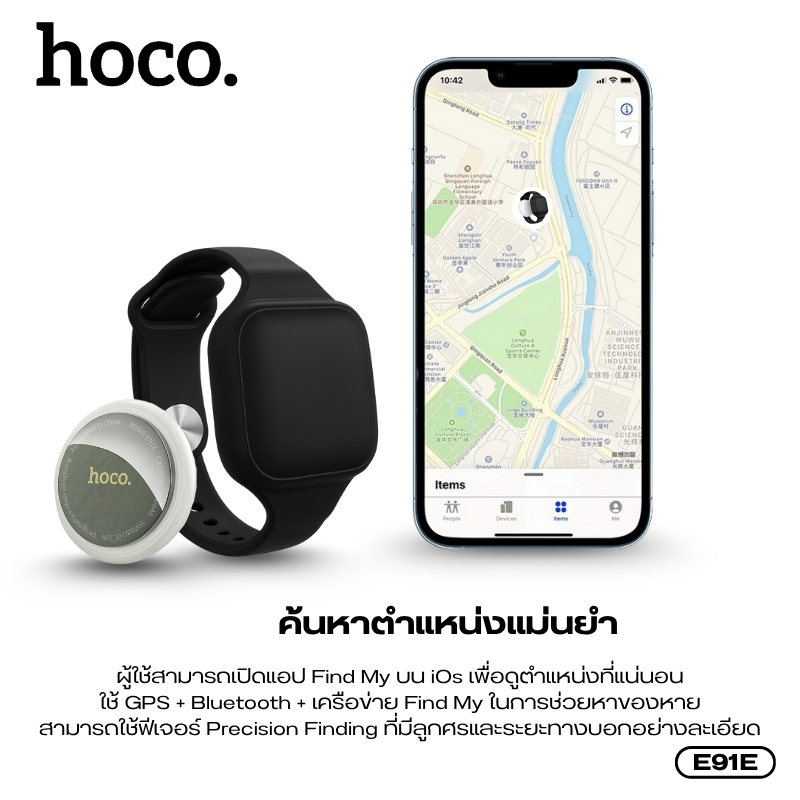 GPS ติดตามการสูญหาย แบบสายรัดข้อมือ HOCO E91E ระบุตำแหน่งแม่นยำทั่วโลก พร้อมฟังก์ชัน กดปุ่มเรียกได้ทันที