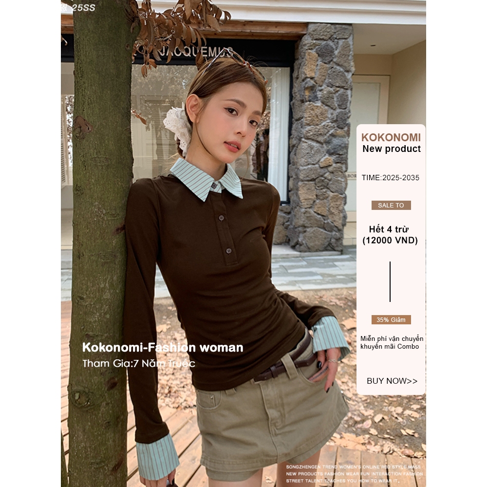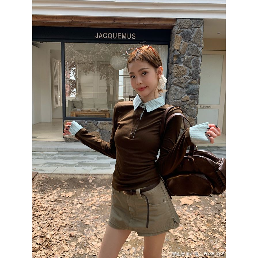 เสื้อยืดแขนยาวผู้หญิง ลายทางแนวเรโทร ทรงกระแทรก เหมาะสำหรับฤดูใบไม้ร่วง