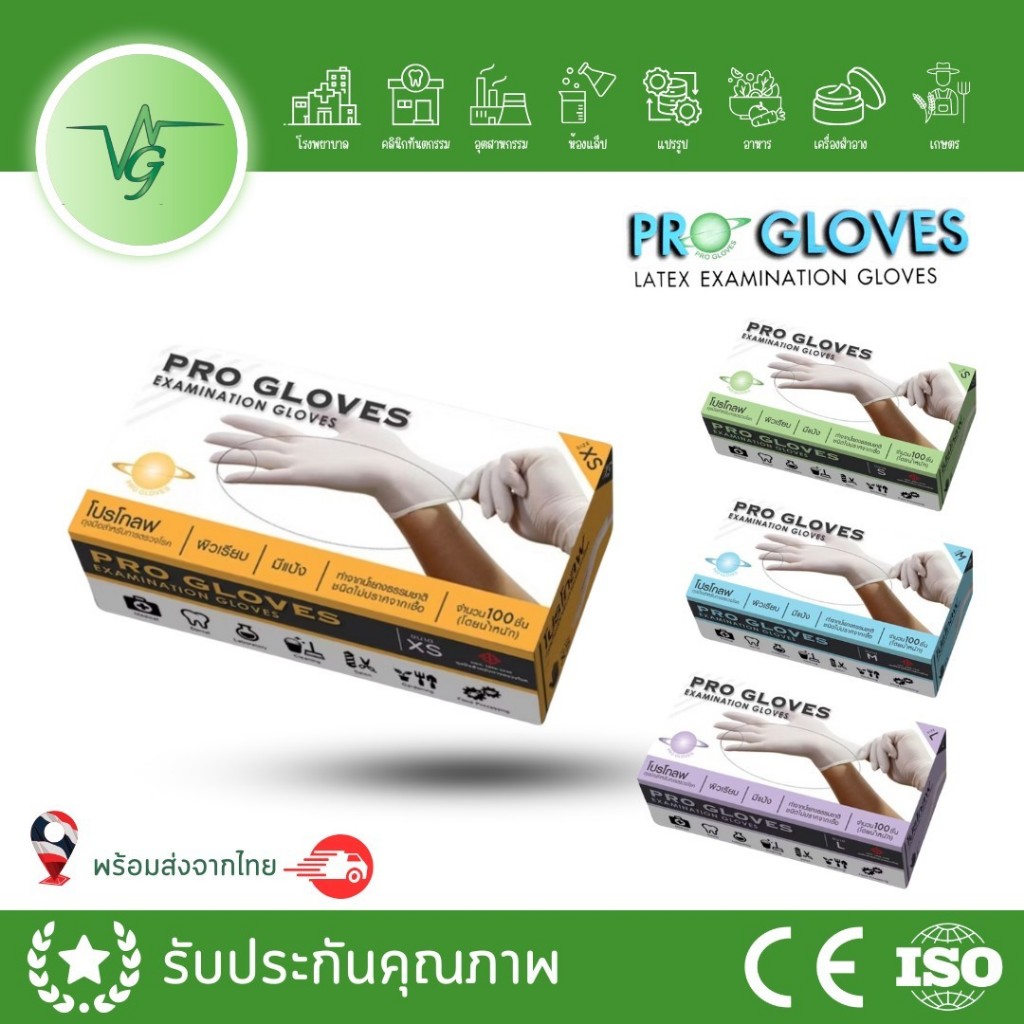 Progloves ถุงมือยาง ถุงมือยางทางการแพทย์ คุณภาพสูง มีแป้ง โปรโกลฟ Progloves บรรจุ 100 ชิ้น/กล่อง