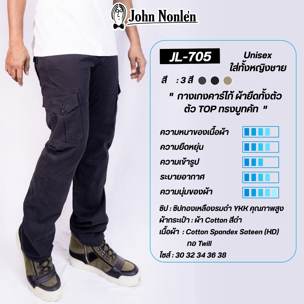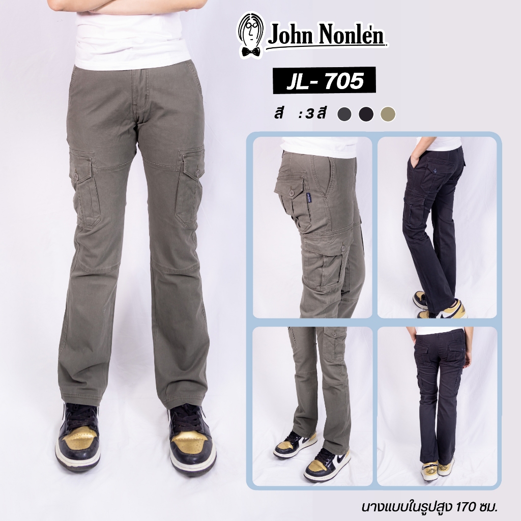 John Nonlen กางเกงคาร์โก้ ผ้ายืดทั้งตัว ตัวTOP ทรงบูทคัท รุ่น JL-705 จอห์น นอนเล่น Unisex ใส่ได้ทั้งหญิงชาย
