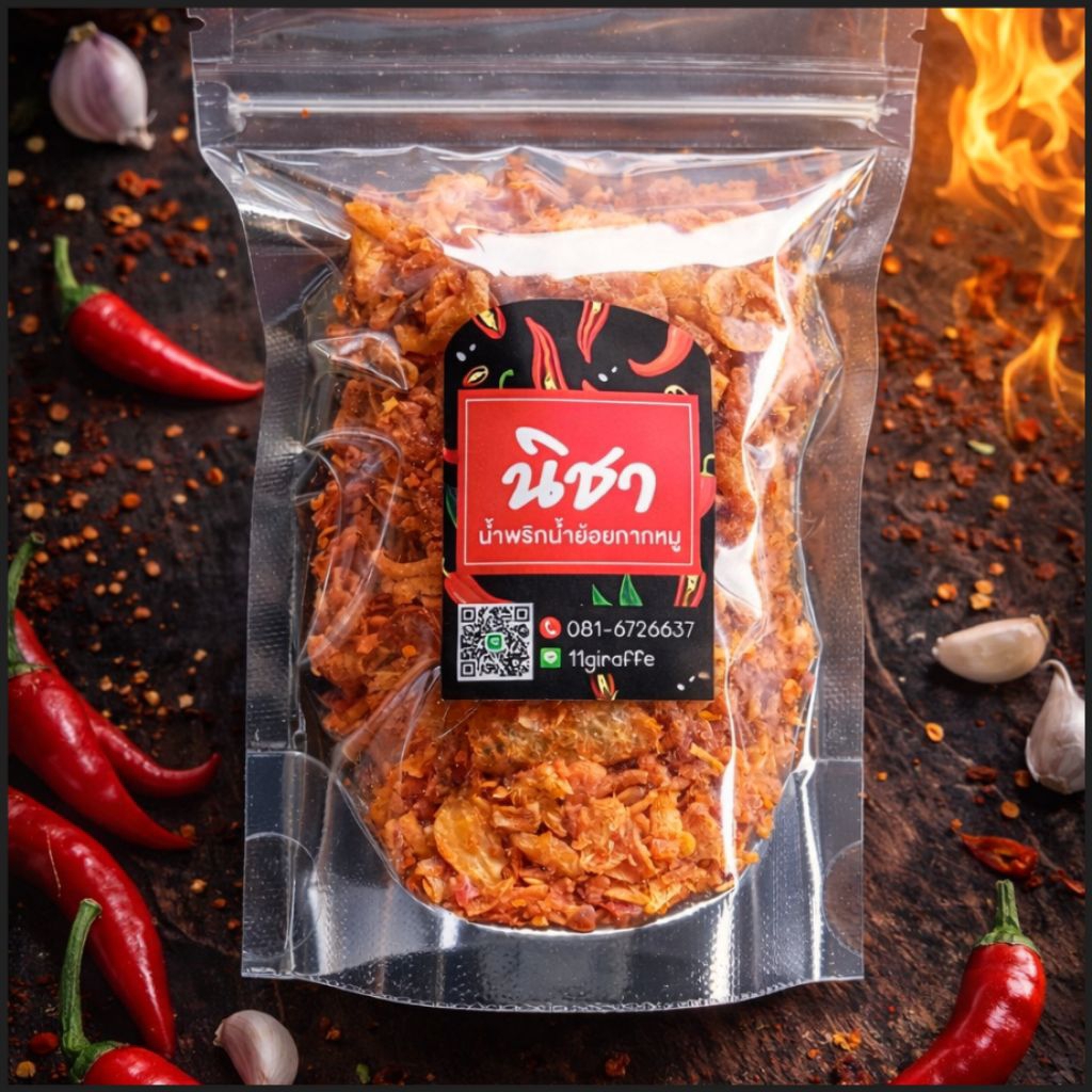 น้ำพริกน้ำย้อยกากหมู ขนาด50กรัม คลุกข้าวก็อร่อย คลุกเส้นหมี่ยิ่งแซ่บ