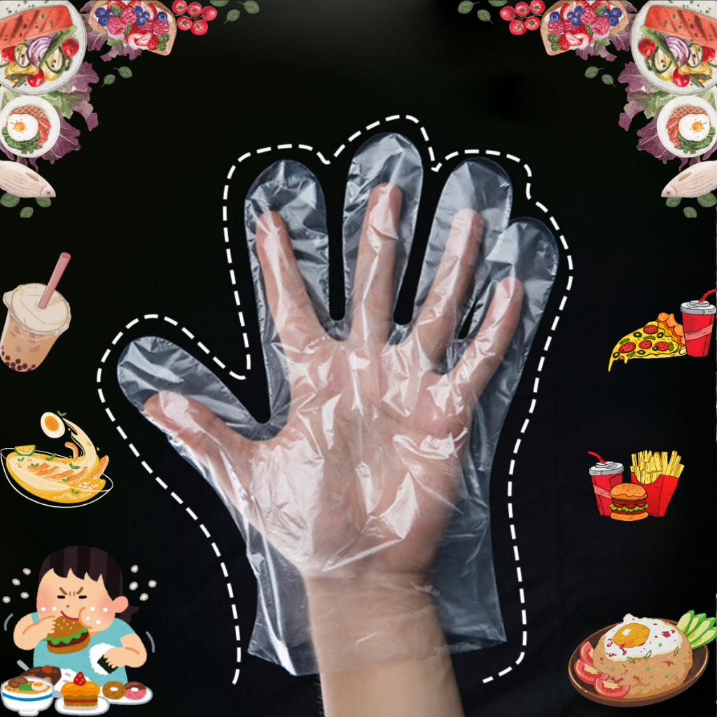 P136 ถุงมือพลาสติก คละลาย Food grade ใช้สะดวก พกพาง่าย ถุงมือจับอาหาร ถุงมือ พลาสติก ใช้แล้วทิ้ง SP