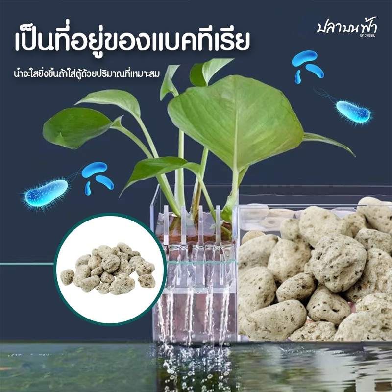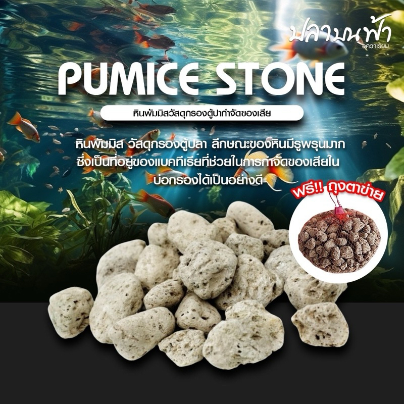 หินภูเขาไฟ (พร้อมถุงตาข่าย 1 แถม 1) ขนาด 200 กรัม 500 กรัม และ 1000 กรัม ฝุ่นน้อย ใช้เป็นวัสดุกรอง หรือรองพื้นตู้ได้