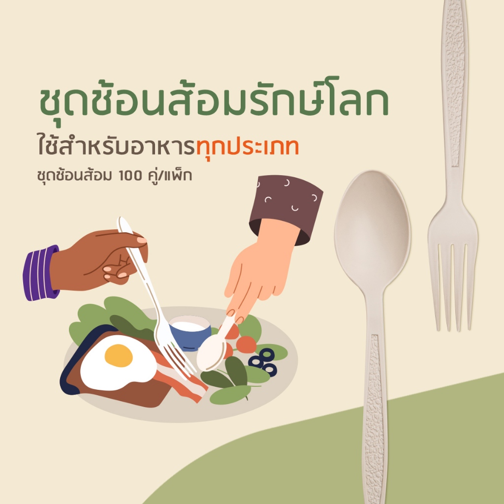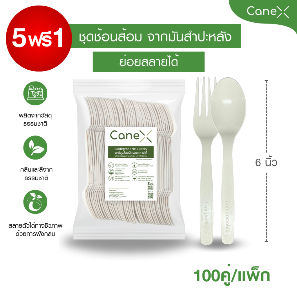 (โปร 5 แถม 1) ชุดช้อนส้อมรักษ์โลก ย่อยสลายได้100% (100คู่/แพ็ก) ขนาด 6 นิ้ว ปลอดภัย จับถนัดมือ