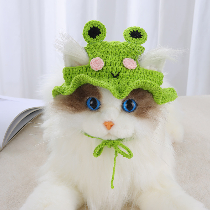 หมวกแมวน่ารักตลก Hand-made ถัก Puppy หมวกสัตว์เลี้ยงคอสเพลย์ Headwear ยืดหยุ่นสุนัขลูกแมวหมวกผมตกแต่ง