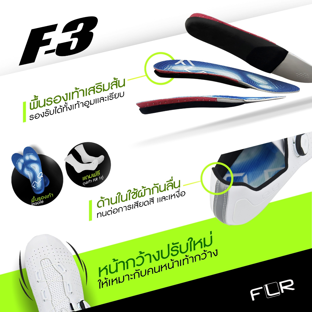 FLR รองเท้าจักรยานเสือหมอบ F-3 สี White - เท้าคนหน้ากว้างใส่ได้