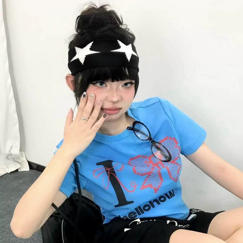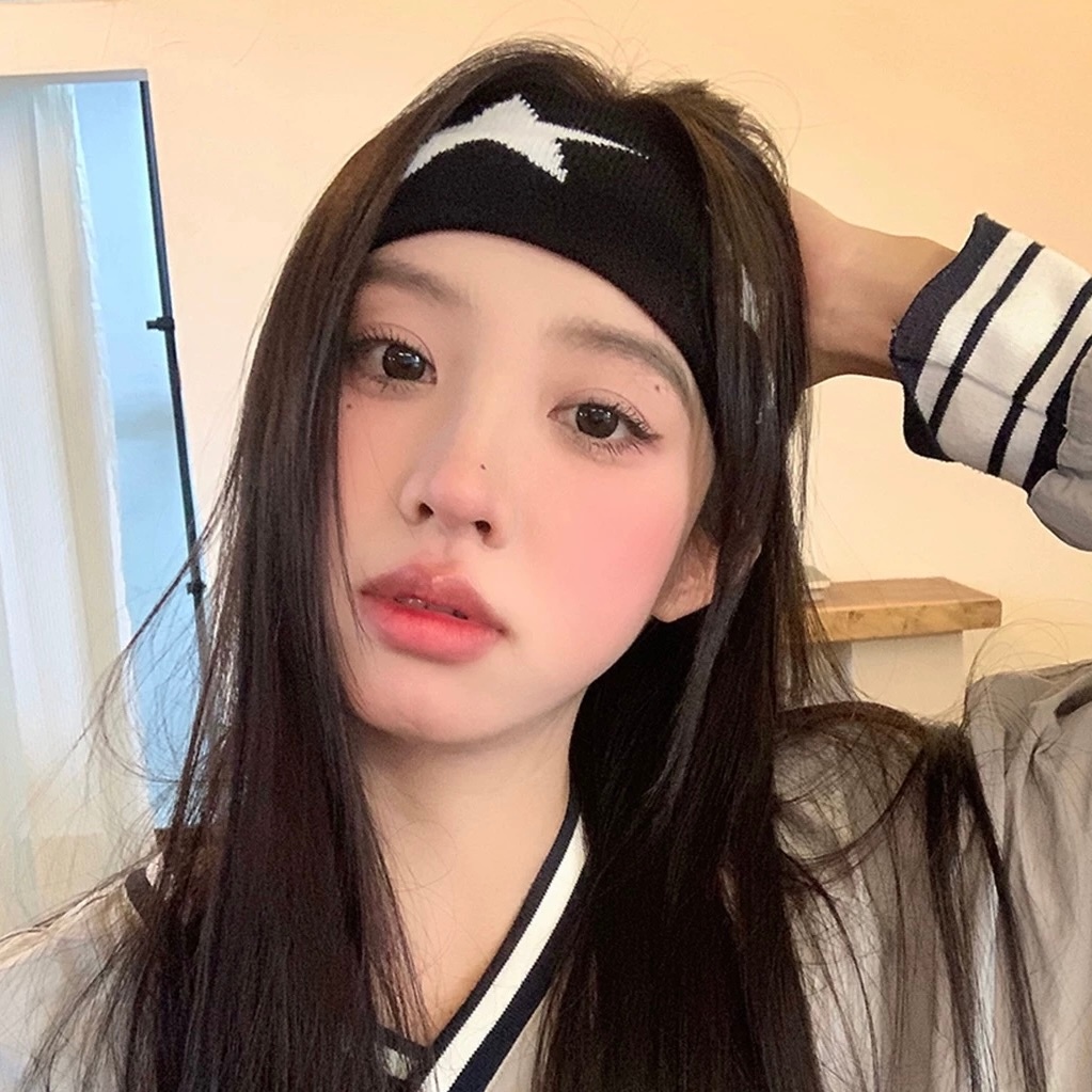 ผ้าคาดผม การออกกำลังกาย ลายดาวห้าแฉก โยคะ ดูดซับเหงื่อ แถบคาดศีรษะ สาว ย้อน ยุค