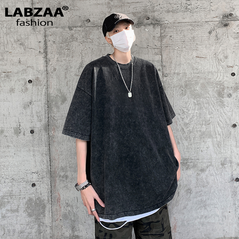 (ส่งด่วนกทม) เสื้อยืดสีฟอกสำหรับผู้ชาย สไตล์วินเทจ คอกลมแขนสั้น แฟชั่นสำหรับฤดูร้อน โอเวอร์ไซซ์ ผ้าฝ้าย YG0