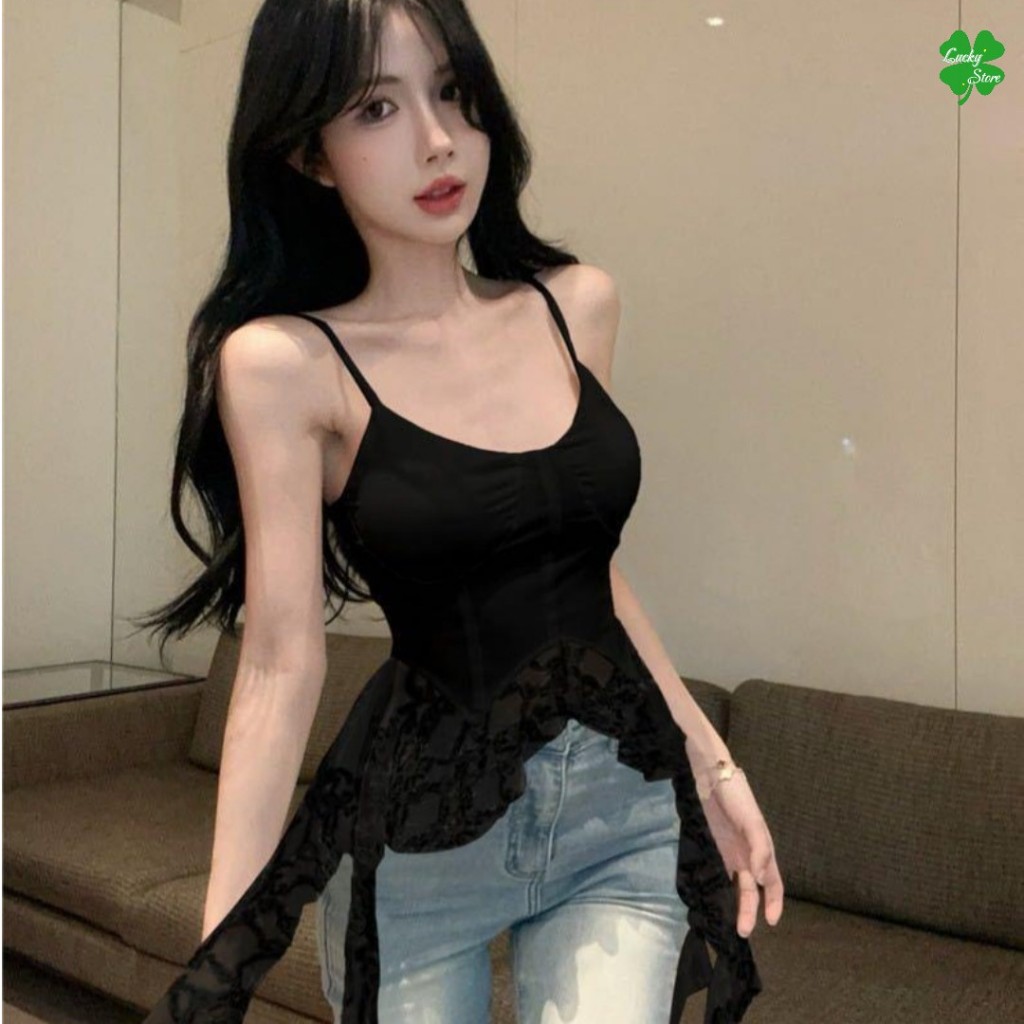 เสื้อสายเดี่ยว มีฟองน้ำ ดีเทลแต่งปลายลูกไม้ เซ็กซี่เบาๆ