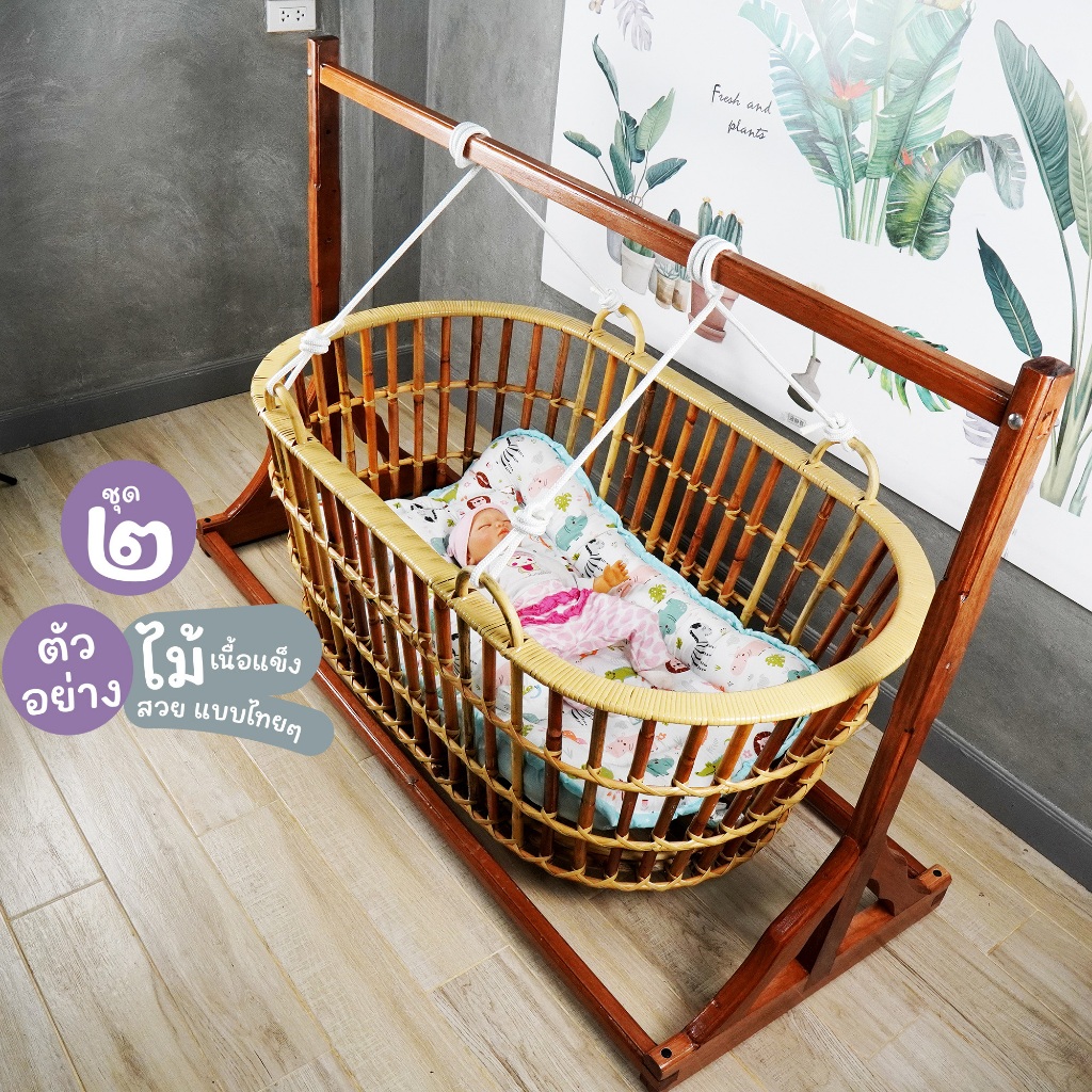 โครงไม้เปลหวาย เปลหวายเด็ก วัสดุไม้เนื้อแข็ง งานแข็งแรง สวย แบบไทย100%