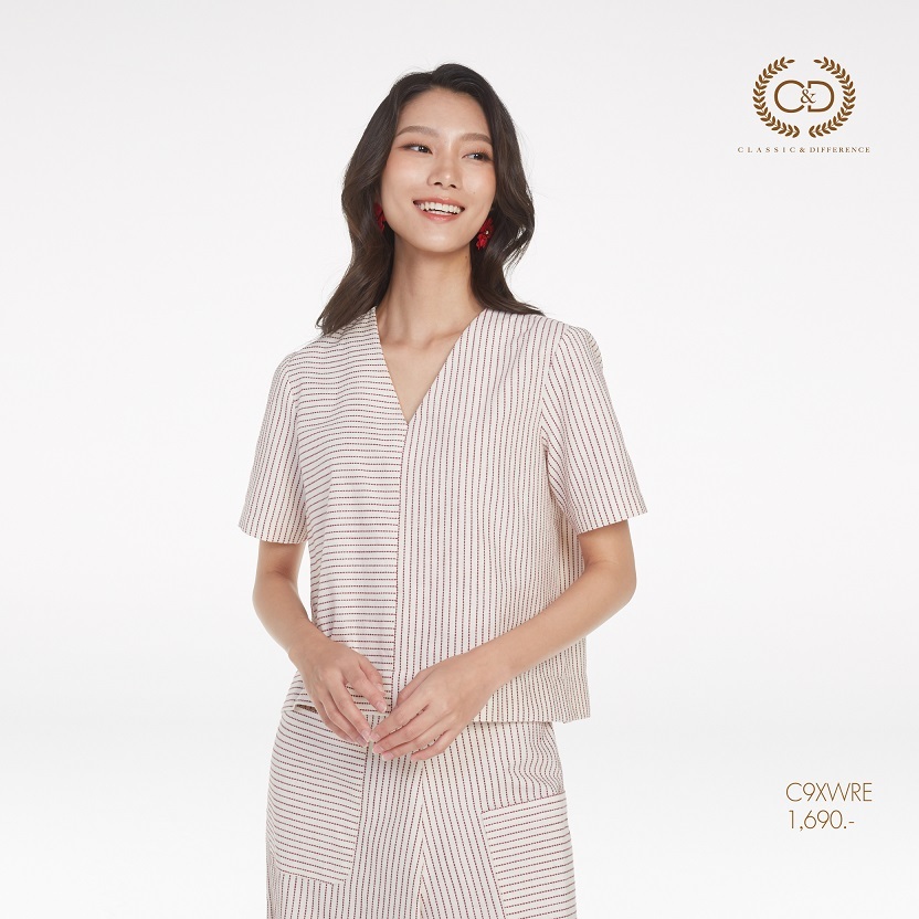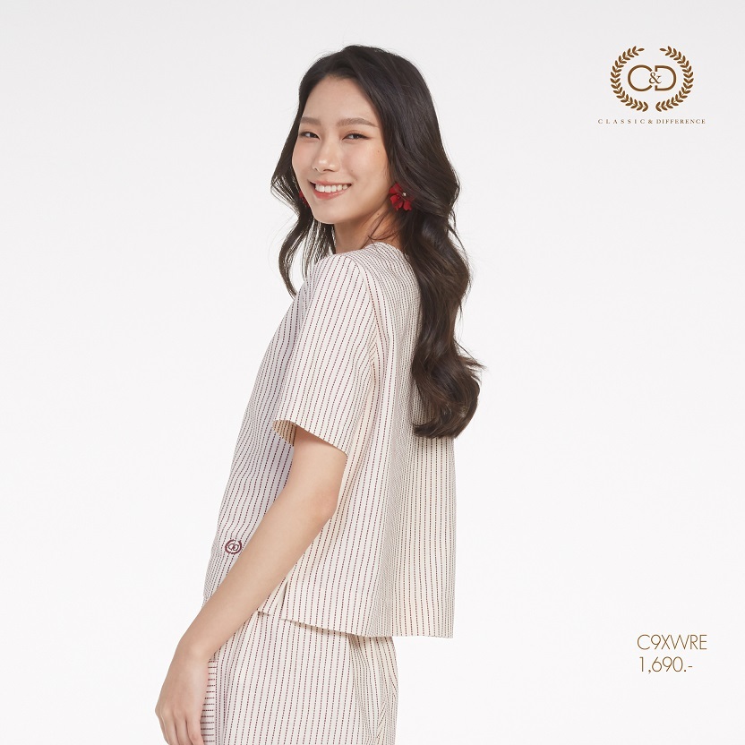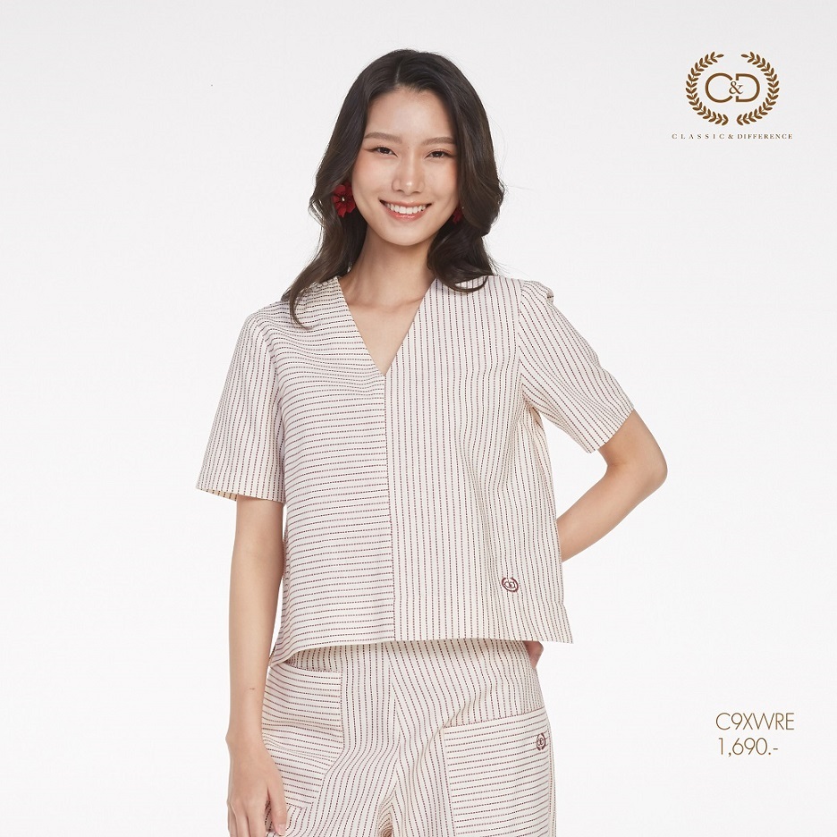 C&D woman's blouse Minimal Red เสื้อผู้หญิง ลายปัก คอวี แขนสั้น สีแดง C9XWRE
