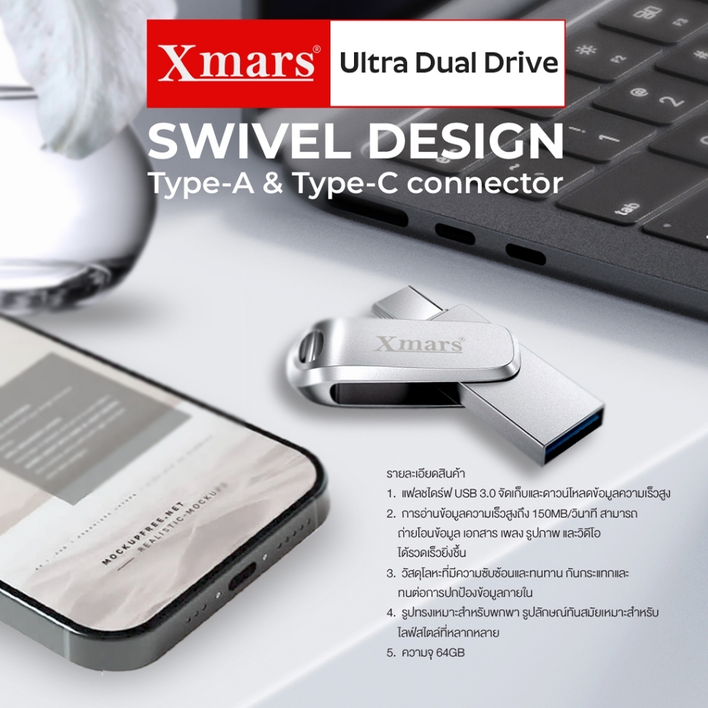 Xmars แฟลชไดร์ฟ 2 หัว 64GB 128GB Flash Drive Type-C Ultra Dual Drive USB A รุ่น FD-06 FD-07