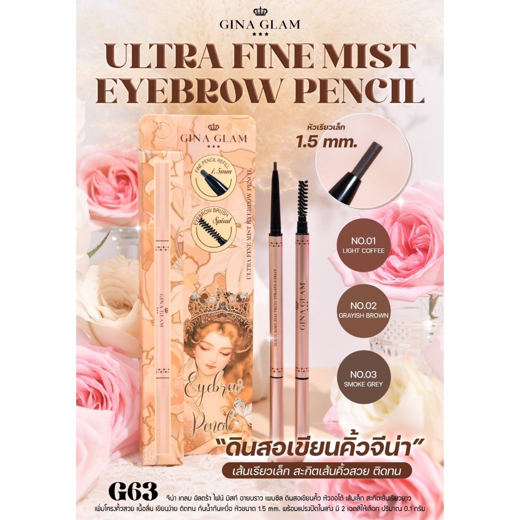 (G63) ดินสอเขียนคิ้วจีน่า เกลม Gina Glam Ultra Fine Mist EyeBrow Pencil 0.1g.