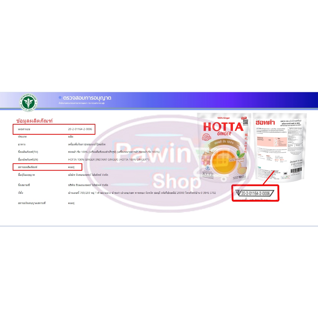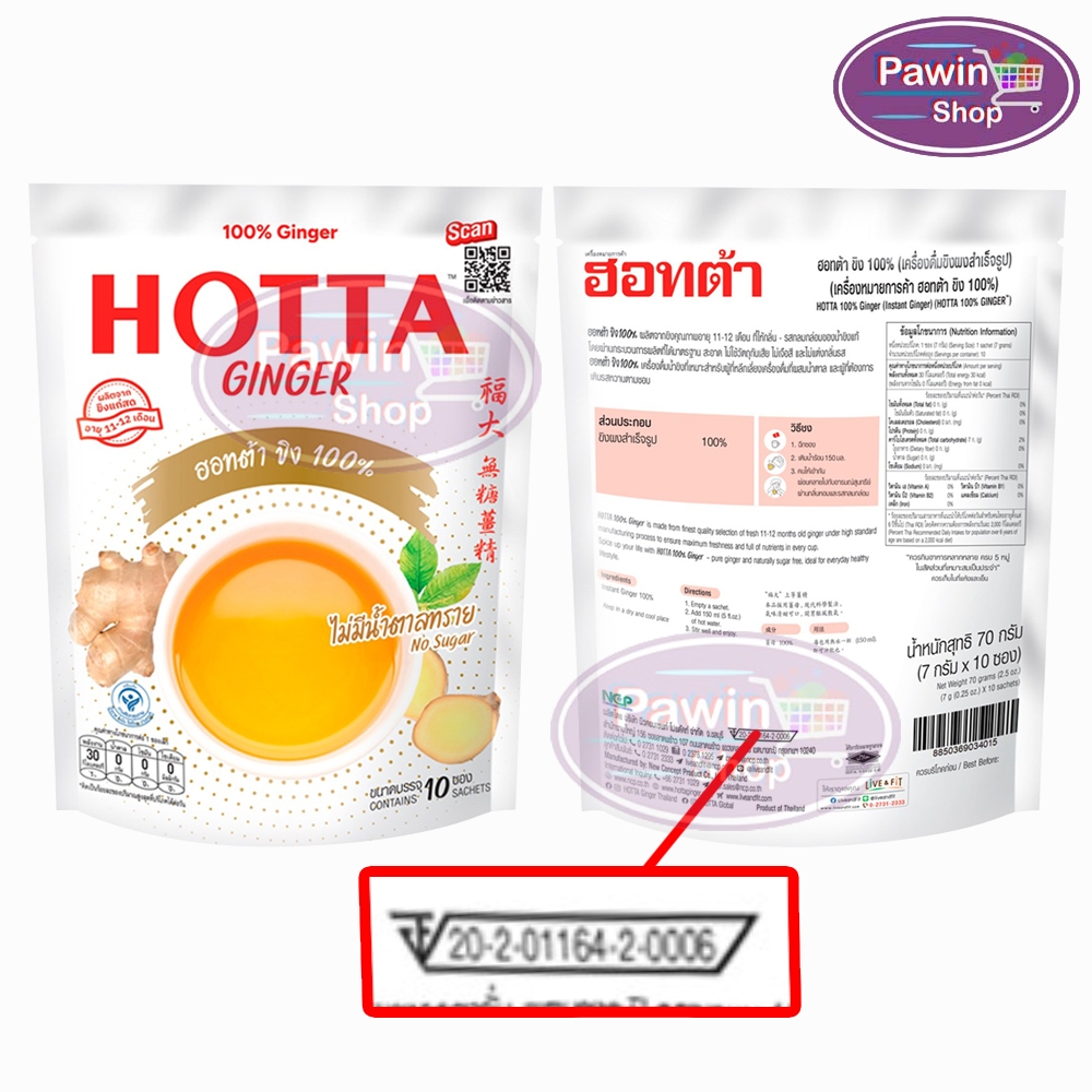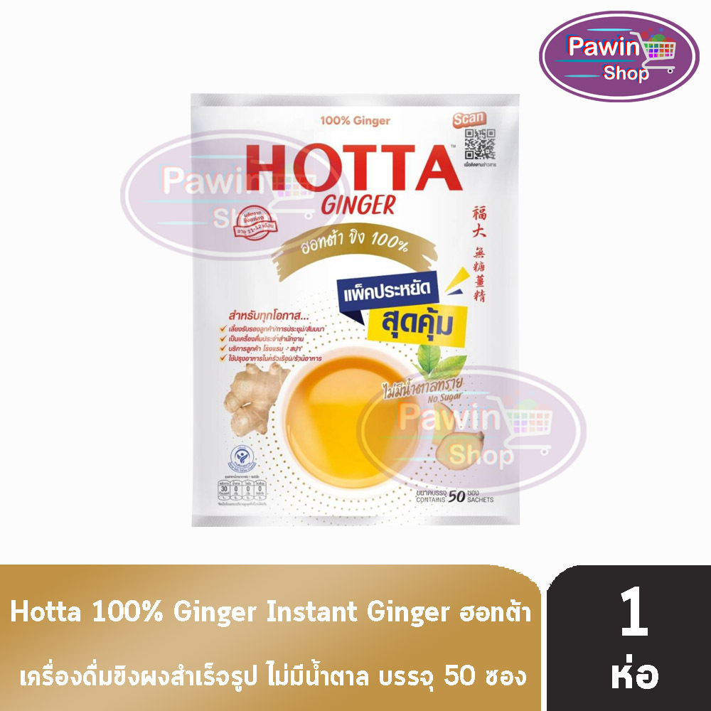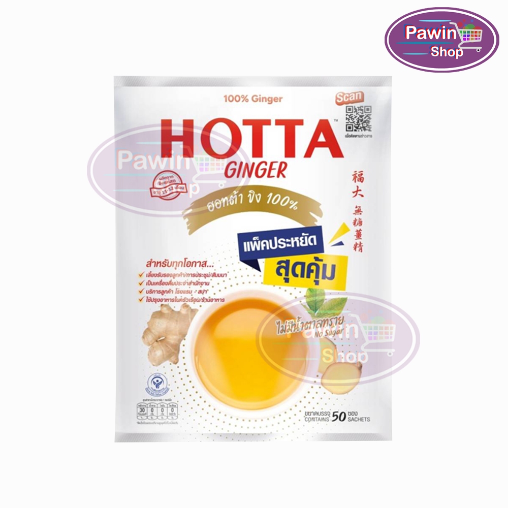 HOTTA Ginger ฮอทต้า ขิง 100 % ขนาด 50 ซอง [1 ห่อ สีขาว] CC 7102 ไม่มีน้ำตาลทราย น้ำขิงฮอทต้า เครื่องดื่มขิงผงสำเร็จรูป