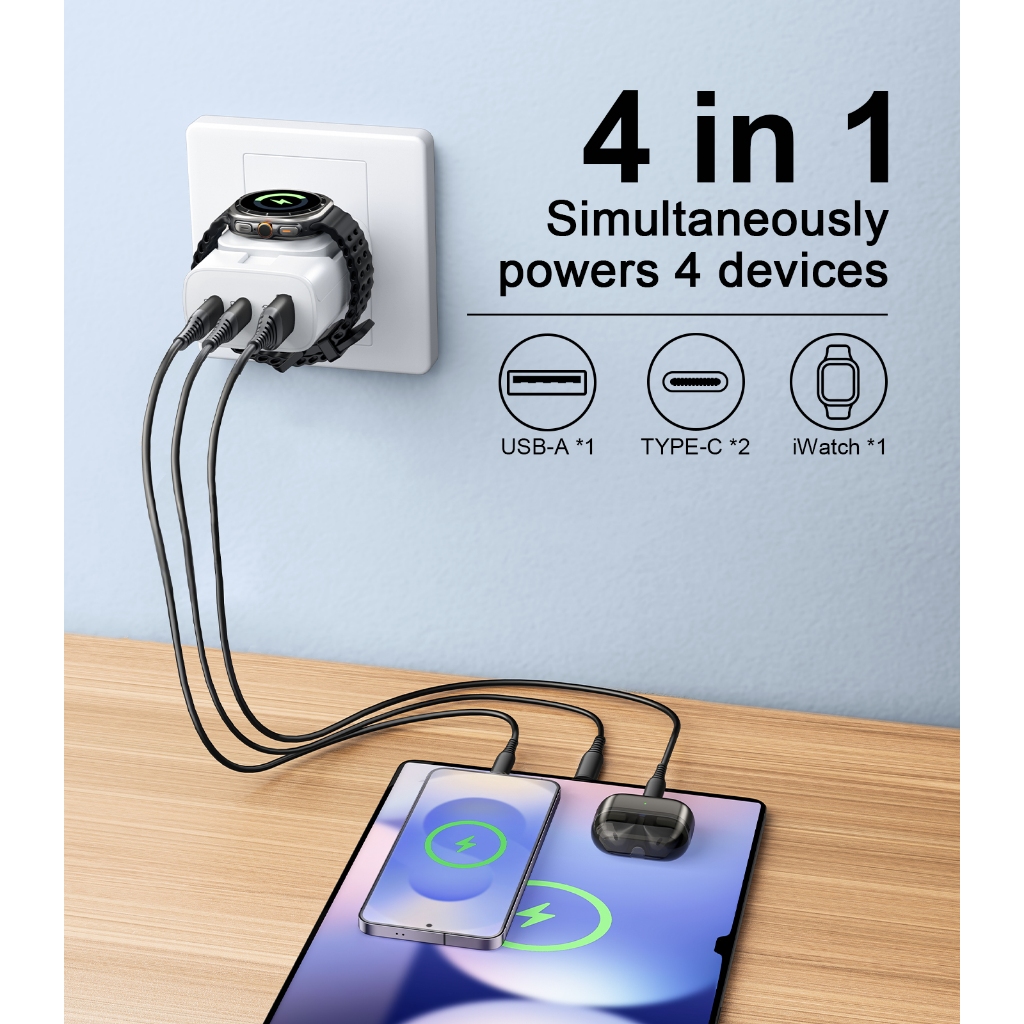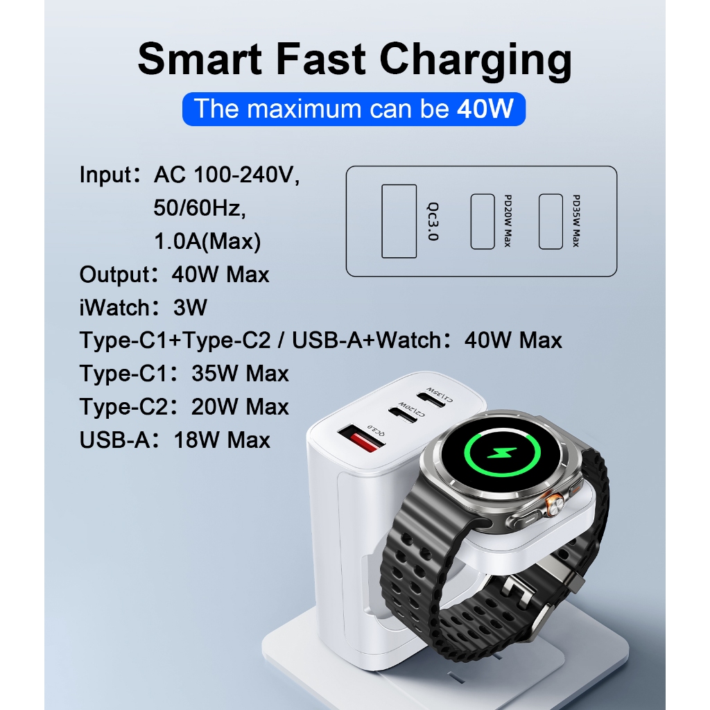 Oatsbasf QC3.0 ที่ชาร์จเร็ว พร้อมที่ชาร์จไร้สาย สำหรับ Samsung Watch / Apple Watch