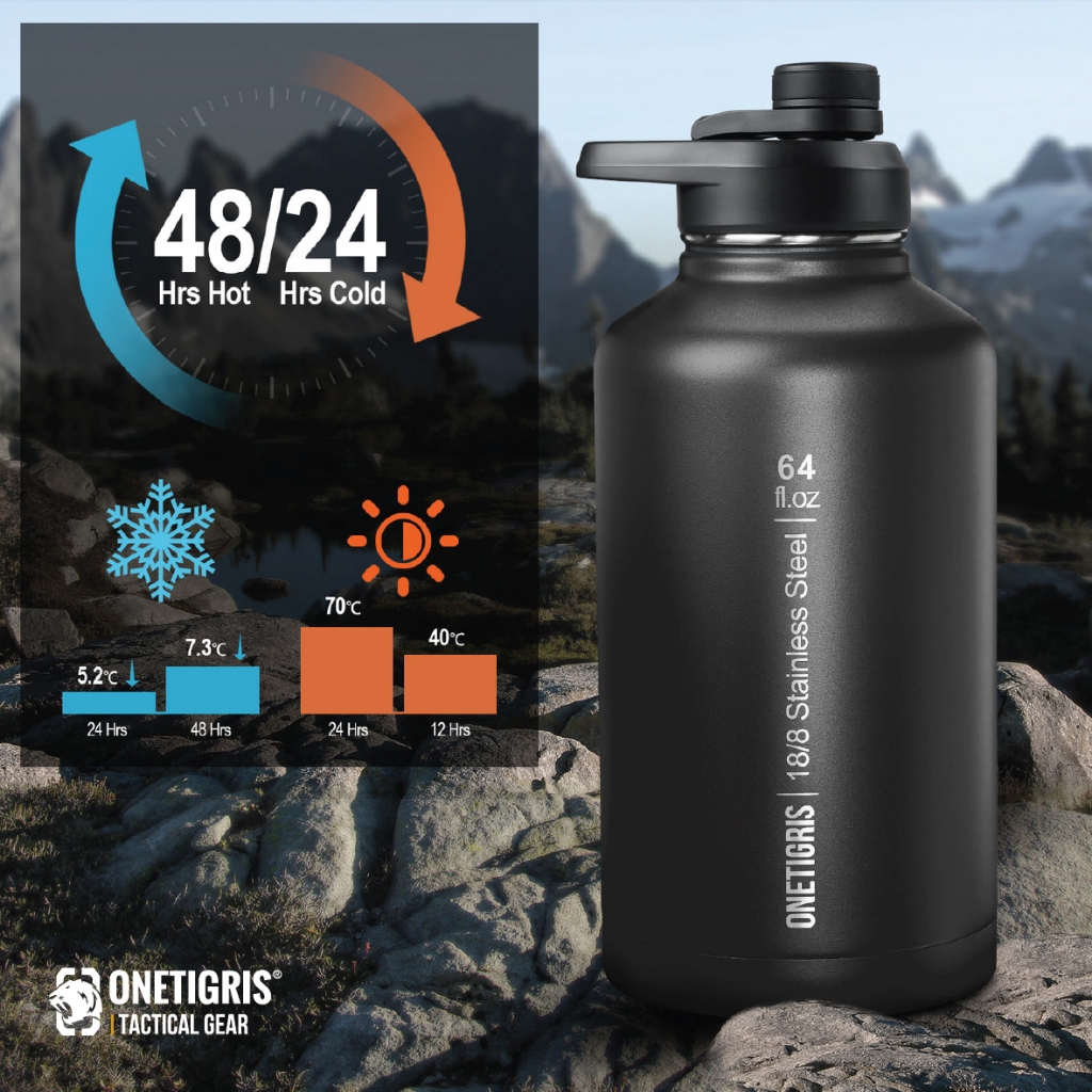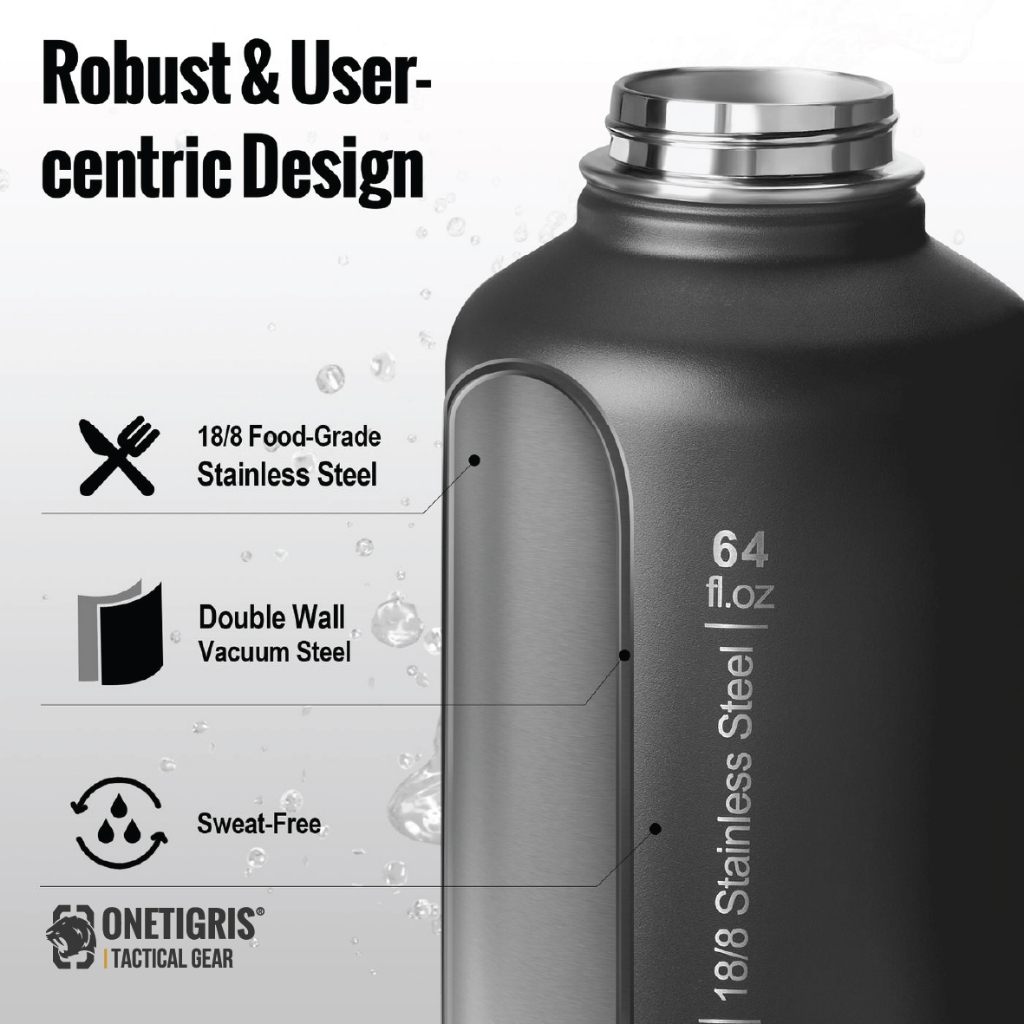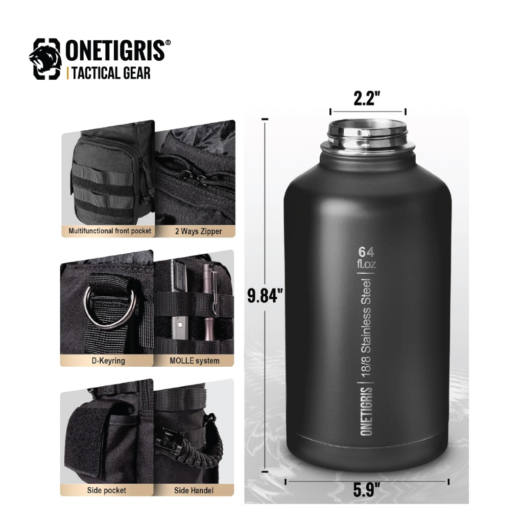 OneTigris 64oz Tactical Water Bottle Set กระบอกน้ำเก็บอุณหภูมิ ขวดน้ำพกพาเก็บความร้อนและความเย็น