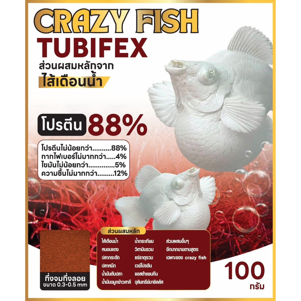 Crazy Fish Tubifex อาหารปลาบอลลูน โปรตีนสูง 88% ส่วนผสมหลักจาก [ไส้เดือนน้ำ]