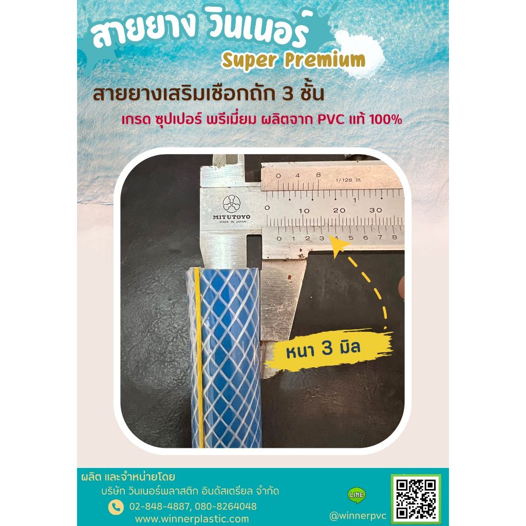 สายยางเสริมเชือกถัก Super Premium 5 หุน 5/8" หนา 3 ชั้น (ตราวินเนอร์) (10,15,20,30 เมตร)
