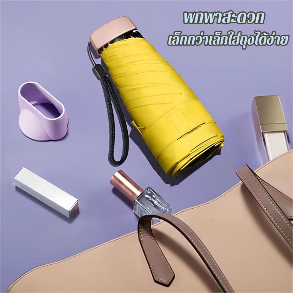 วันที่แดดจ้า วันที่ฝนตก การใช้งานคู่ ร่ม กันน้ำ ป้องกันรังสียูวี มินิ แบบพกพา หลากหลาย สี ของเลือก (6 กระดูก)