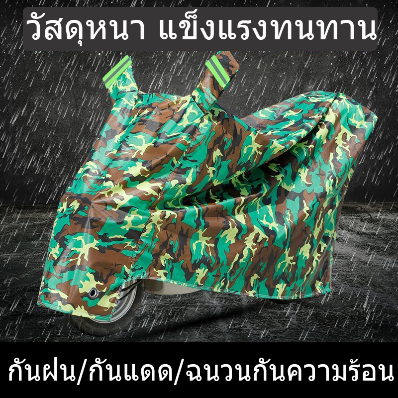 ผ้าคลุมรถมอไซ กันแดดกันน้ำได้ ถุงคลุมรถมอไซ ทุกรุ่น ผ้าคลุมรถมอเตอร์ไซค์ honda PCX Yamaha BigBike สีดำ,เงิน,ลายพราง XXL