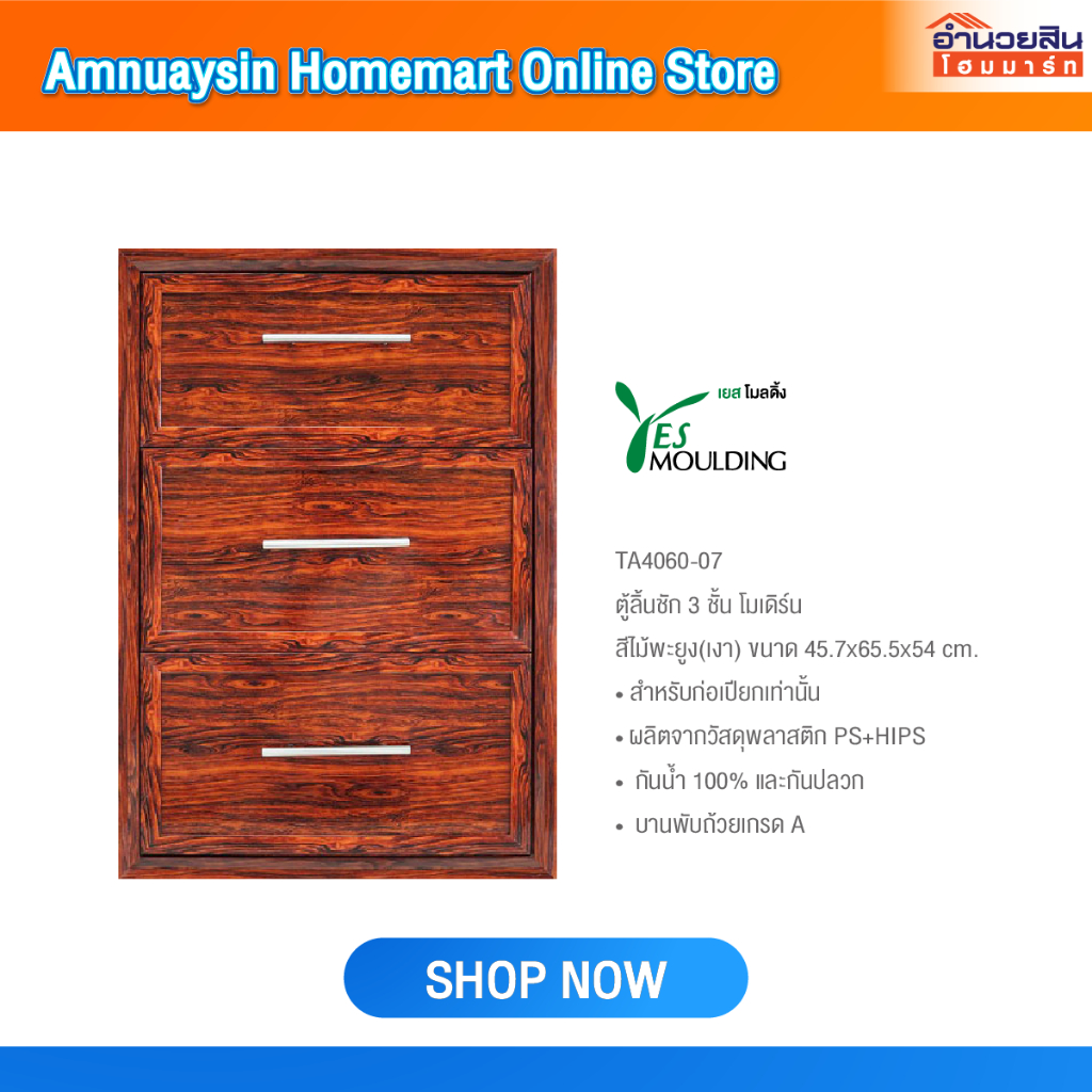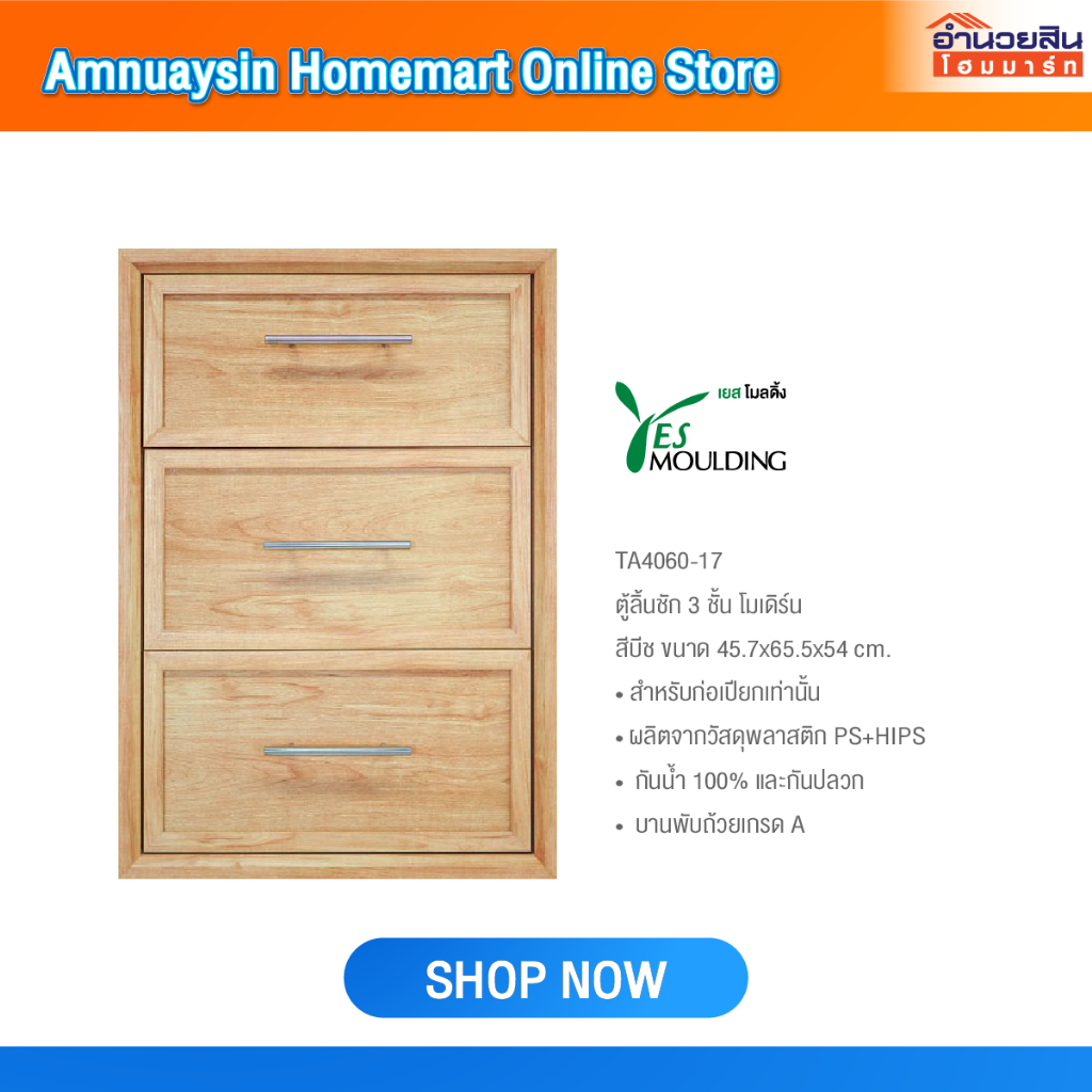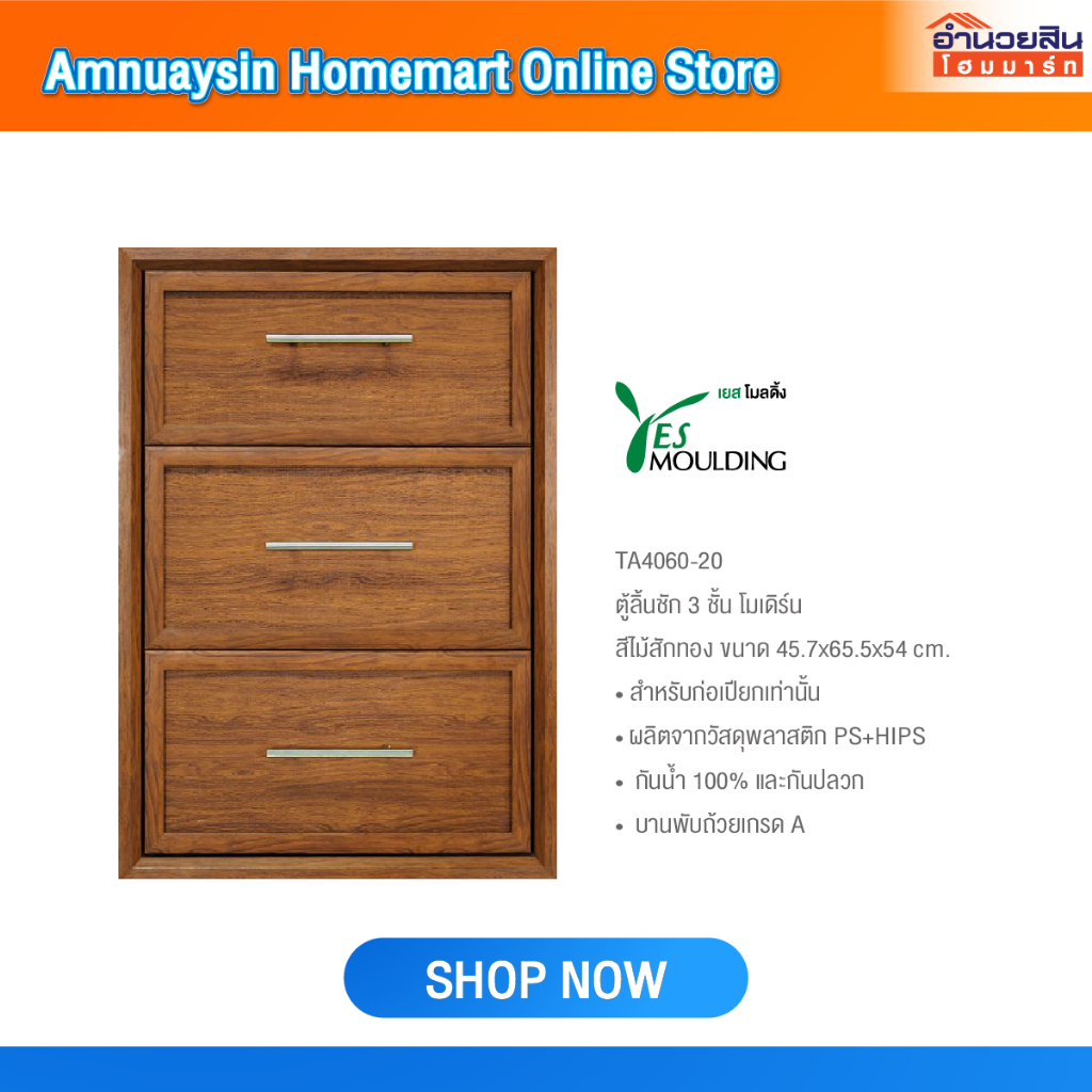 Yes Moulding TA4060 ตู้ชิ้นชัก 3 ชั้นโมเดิร์น(ก่อเปียก)