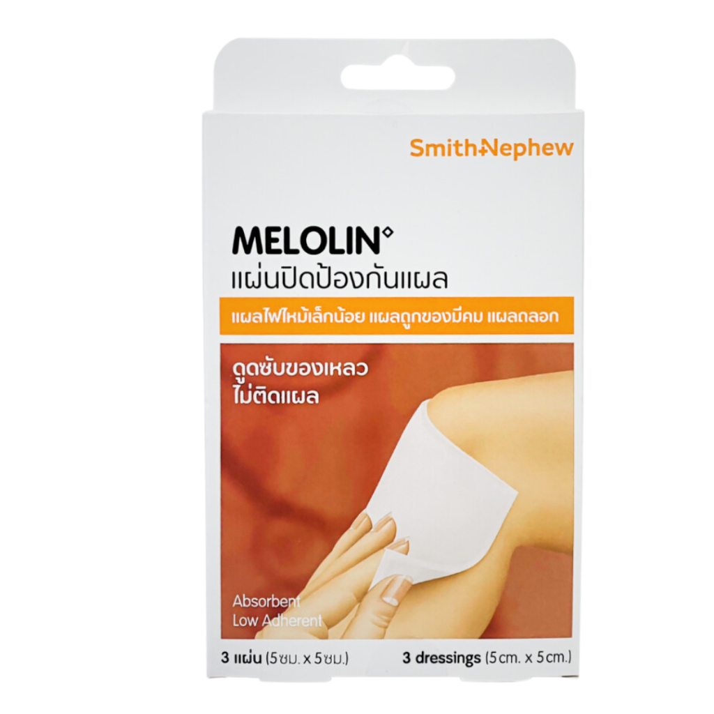 Melolin Smith & Nephew เมโลลิน ก๊อซสังเคราะห์ชนิดไม่ติดแผล. บรรจุ 3 ชิ้น [1 กล่อง]