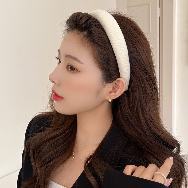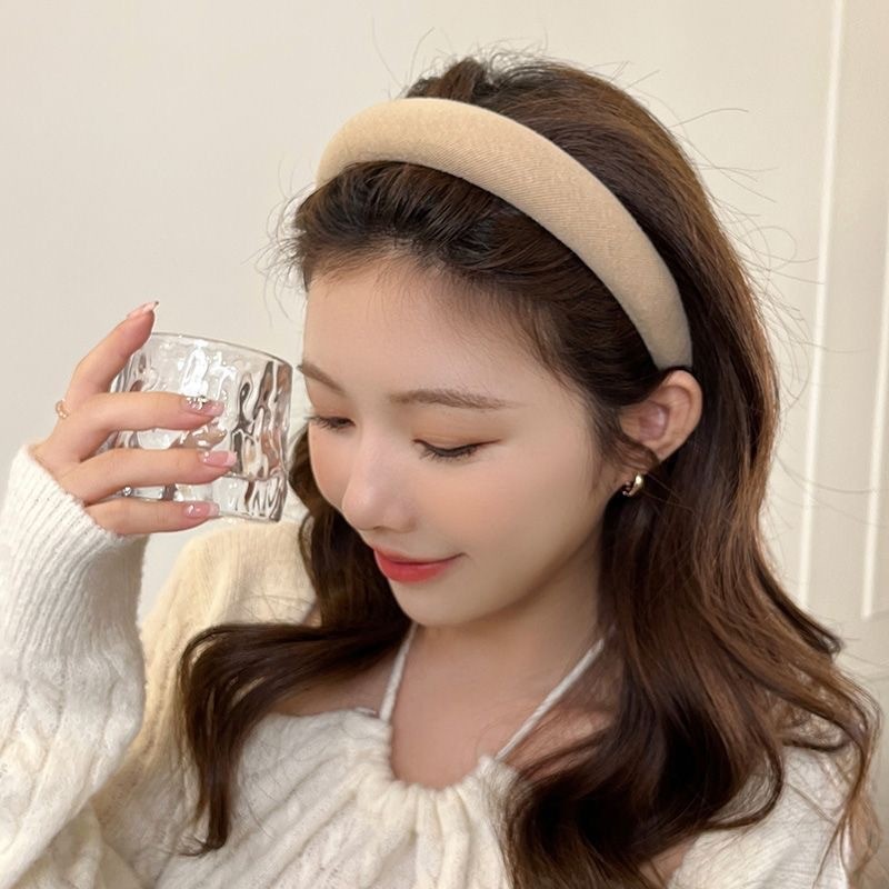 ที่คาดผมสีพื้น ผ้าคาดผมฟองน้ำสไตล์วินเทจฝรั่งเศส สูงทรงหรู –แฟชั่นสำหรับผู้หญิง