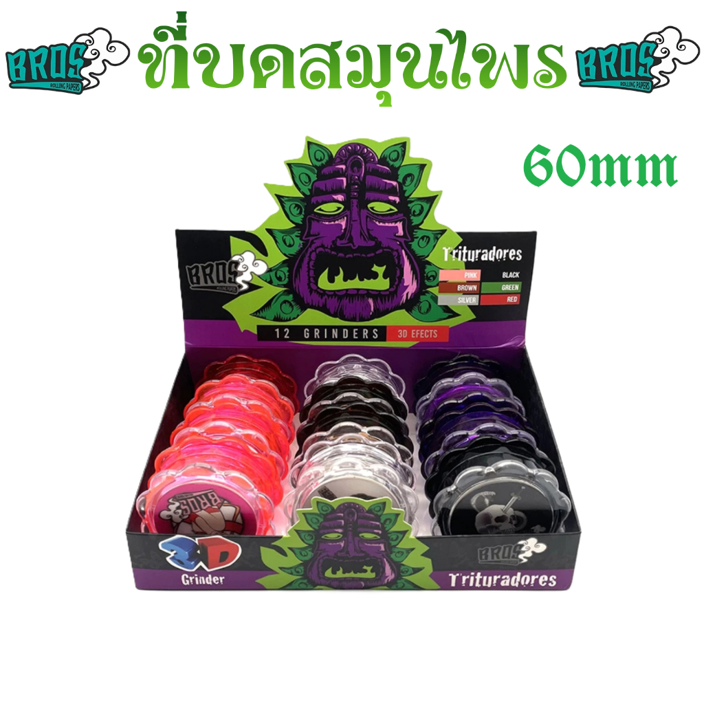ใหม่ ที่บดสมุนไพร Grinder 60mm BROS 3D Grinder ที่บดกัญ ที่บดเครื่องเทศ บดละเอียด ใช้งานง่าย ราคาถูก