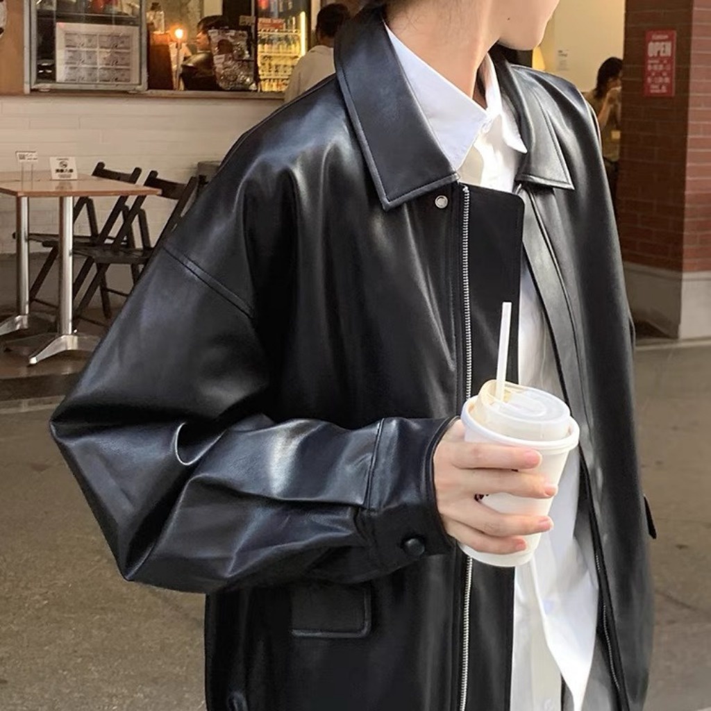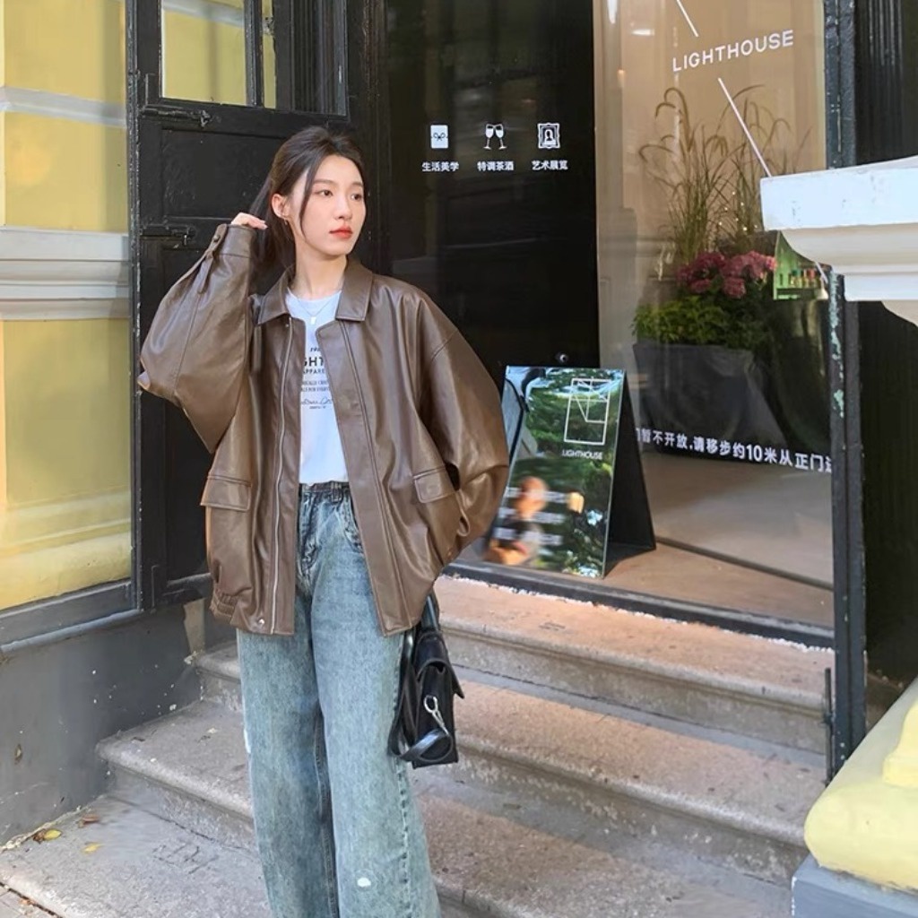 (จัดส่งจากกรุงเทพฯ) ฤดูใบไม้ร่วงรูปแบบใหม่ เสื้อผ้าผู้หญิงสไตล์เกาหลี อเมริกันหลวม แจ็คเก็ตหนังมีสไตล์(Q173)