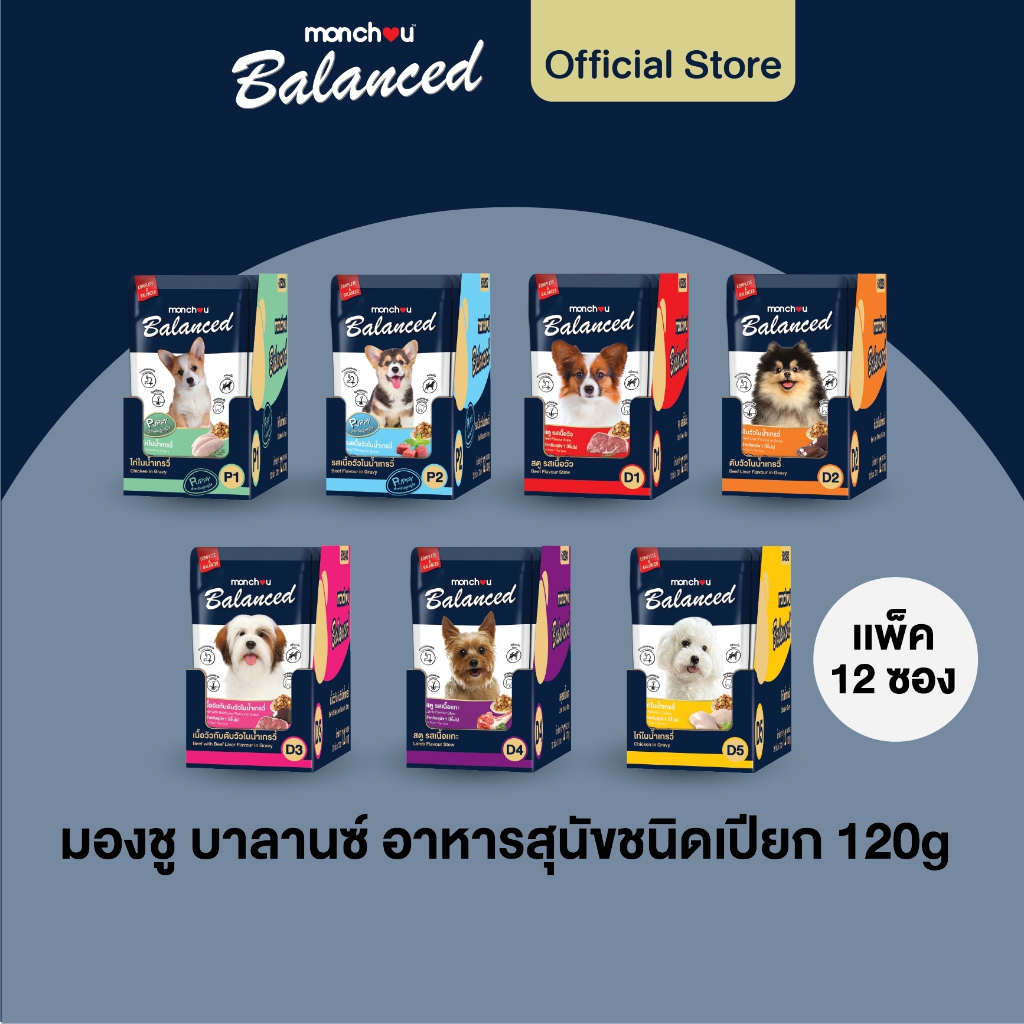 monchou มองชู อาหารสุนัขชนิดเปียก สูตร Balanced 120 กรัม [1 กล่อง (12 ซอง)]
