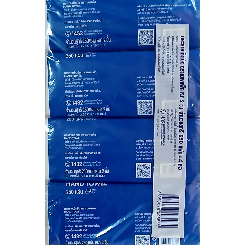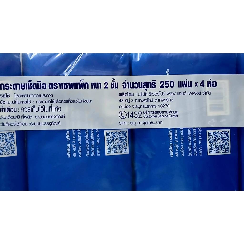 ( 250 แผ่น x 4 ห่อ ) Savepak กระดาษเช็ดมือ ตราเซพแพ็ค หนา 2 ชั้น ขนาดกระดาษ 25 x 19.5 ซม.