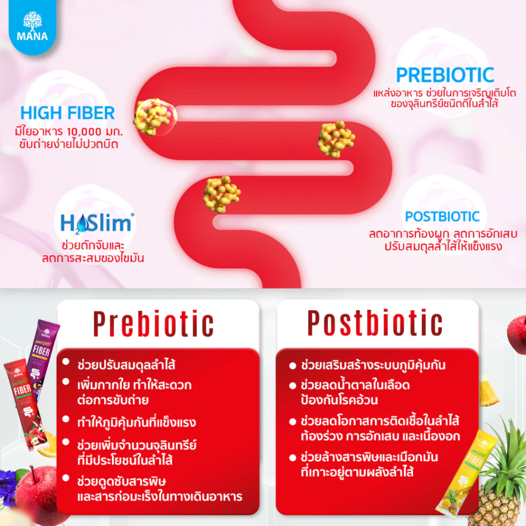 Mana Prolean Fiber มานา โปรลีนไฟเบอร์ 6 แถม 8 กล่อง ไฟเบอร์กระชับสัดส่วน