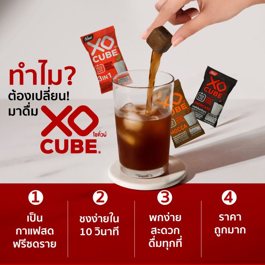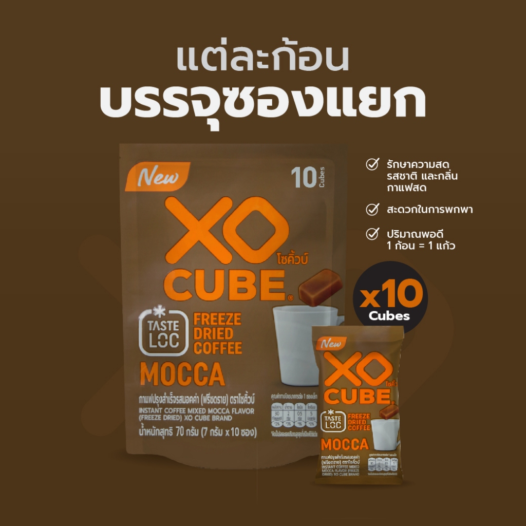 พร้อมส่ง กาแฟก้อนโซคิ้วบ์ มอคค่า แพ็ค 10 ก้อน XO CUBE Mocca Freeze Dried Coffee Cube (10 cubes)
