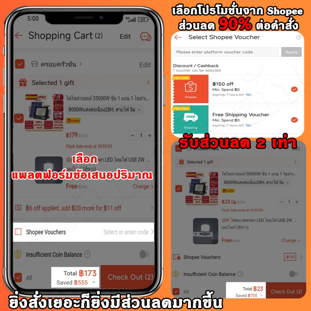 ซื้อ 1 แถม 1 ไฟโซล่าเซลล์ 500000W โซล่าเซลล์ ไฟถนน กันน้ำ IP67 solar cell ไฟสปอร์ตไลท์ LED เปิดปิดอัตโนมัติ