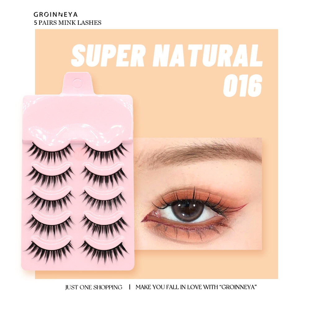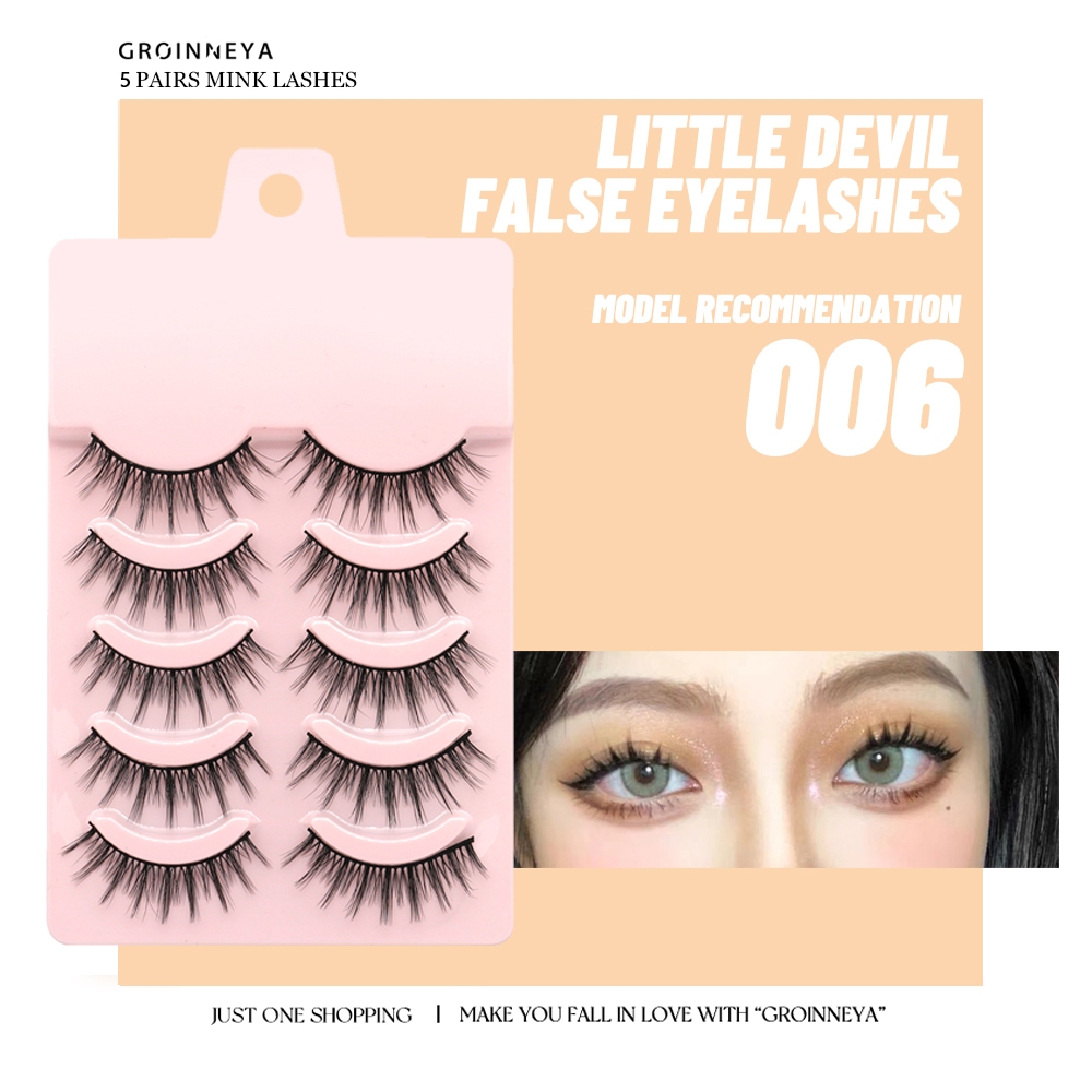 Groinneya ขนตาปลอม 3D แบบหนาแน่น ดูเป็นธรรมชาติ สําหรับแต่งหน้า 5 คู่
