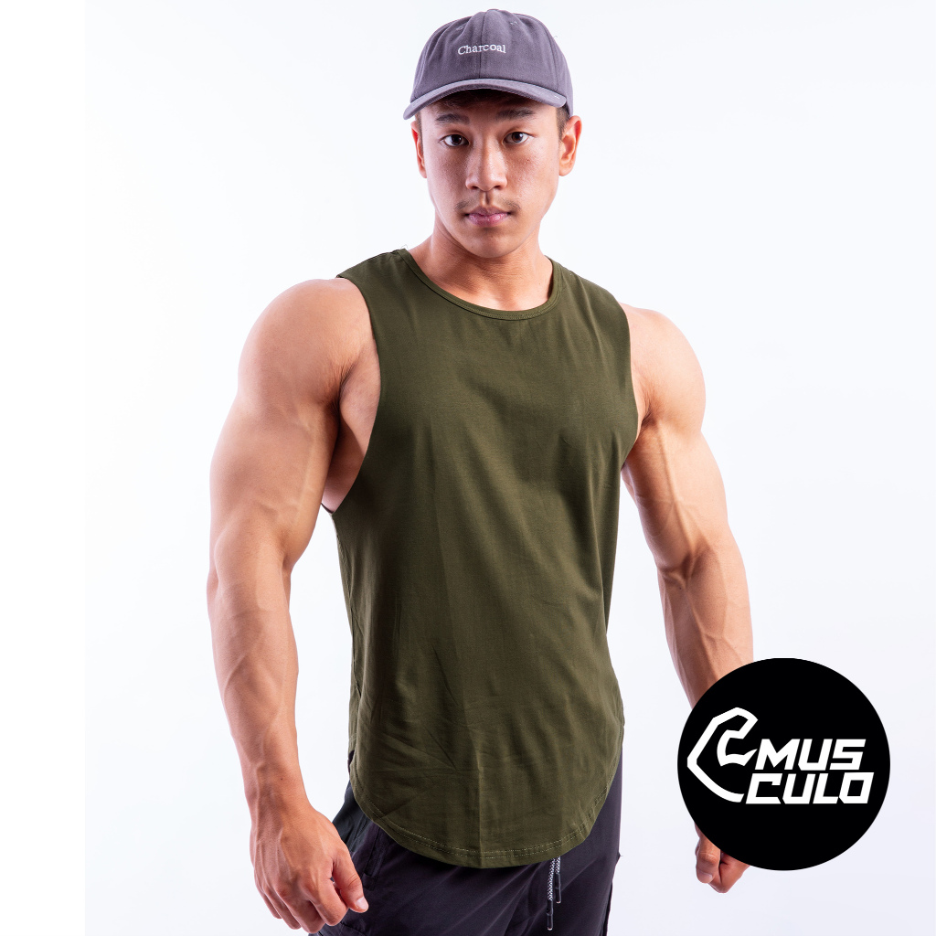Musculo เสื้อกล้ามเล่นยิมทรงเปิดปีกชายโค้งผ้าเรยอน