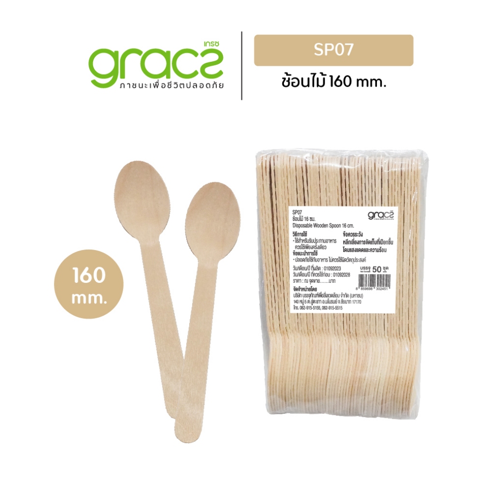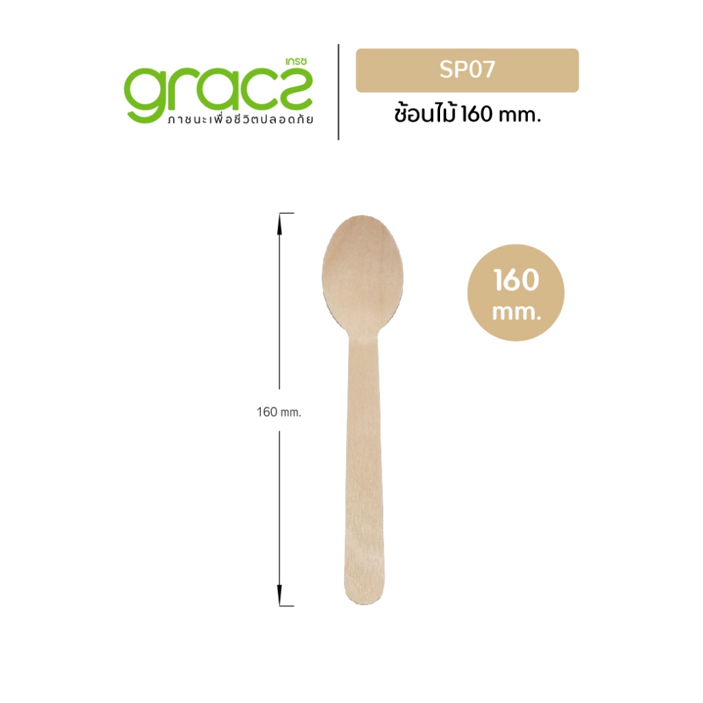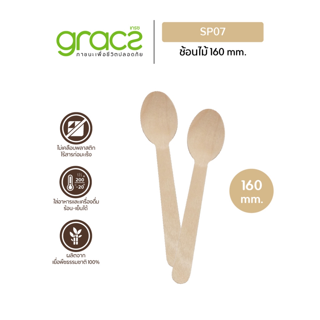 GRACZ ช้อนไม้ 160 mm. รุ่น SP07 (50 ชิ้น) ใช้แล้วทิ้ง ช้อนคาเฟ่ ย่อยสลายได้